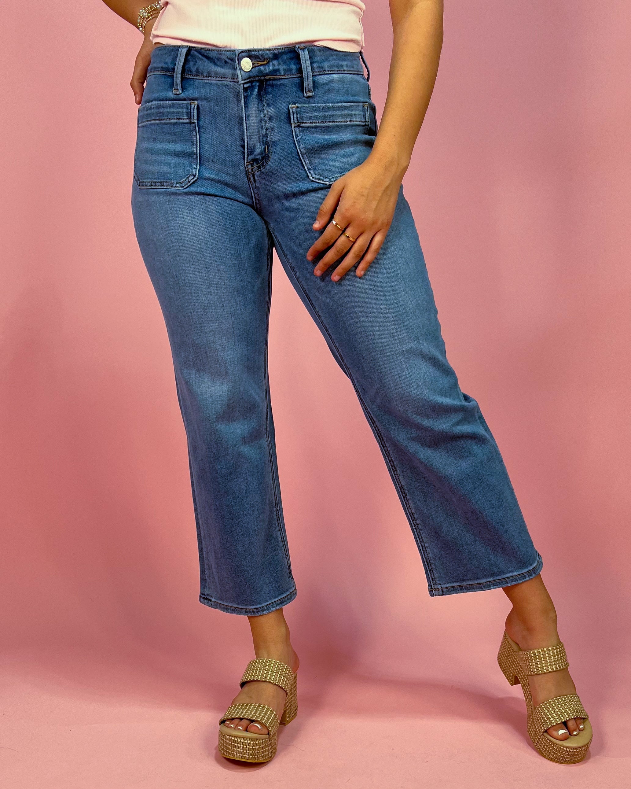 Designed with front patch pockets for a subtle vintage-inspired touch, Valencia stands out in all the right ways. The light wash with soft fading keeps them easy to style year-round, while the clean hem and structured shape make them feel polished enough to dress up or down.