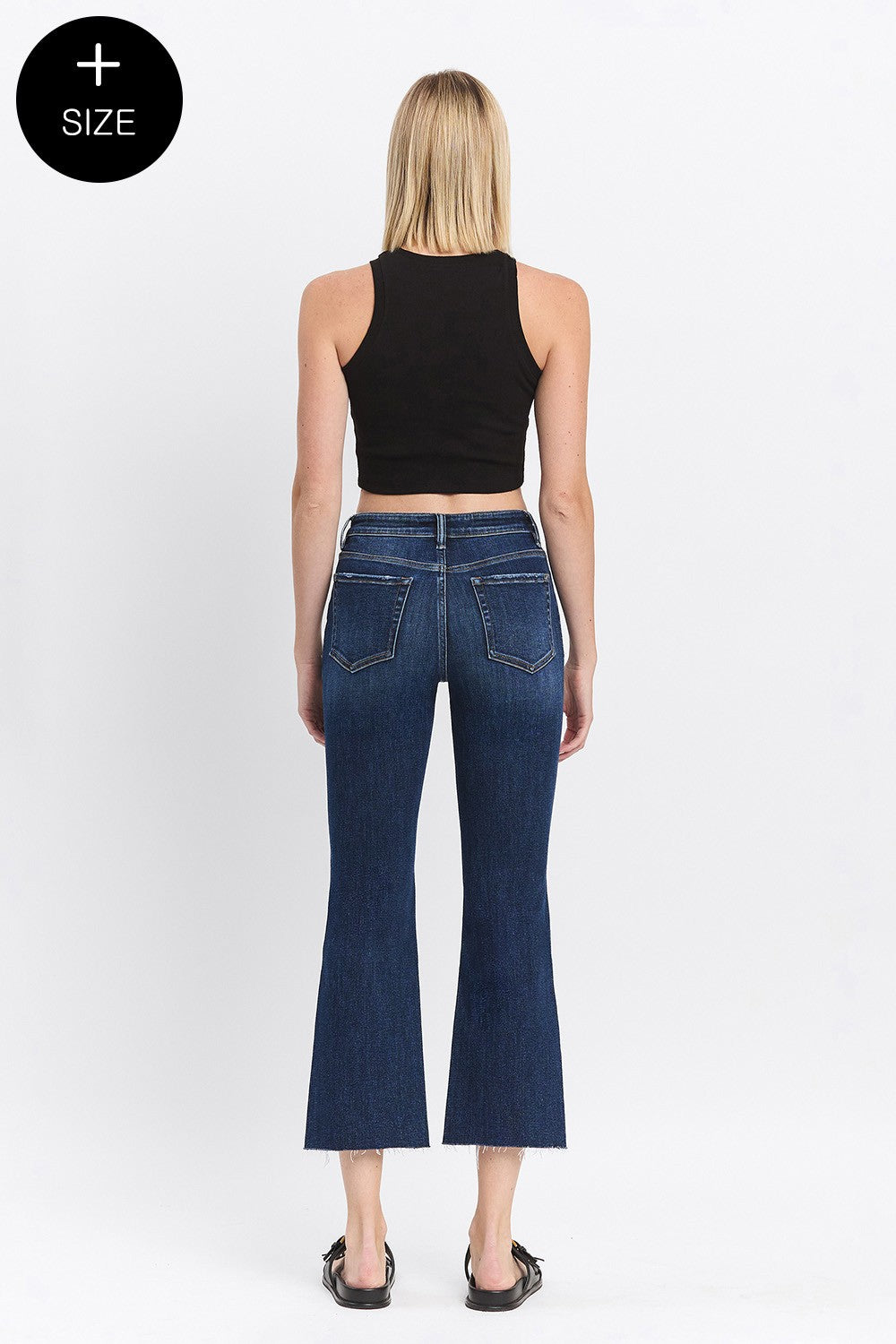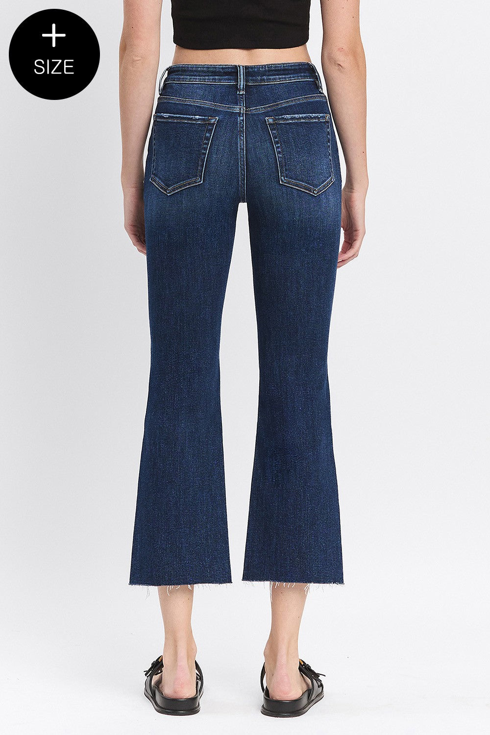 🎨 Style: High Rise • Crop Flare • Dark Wash Denim