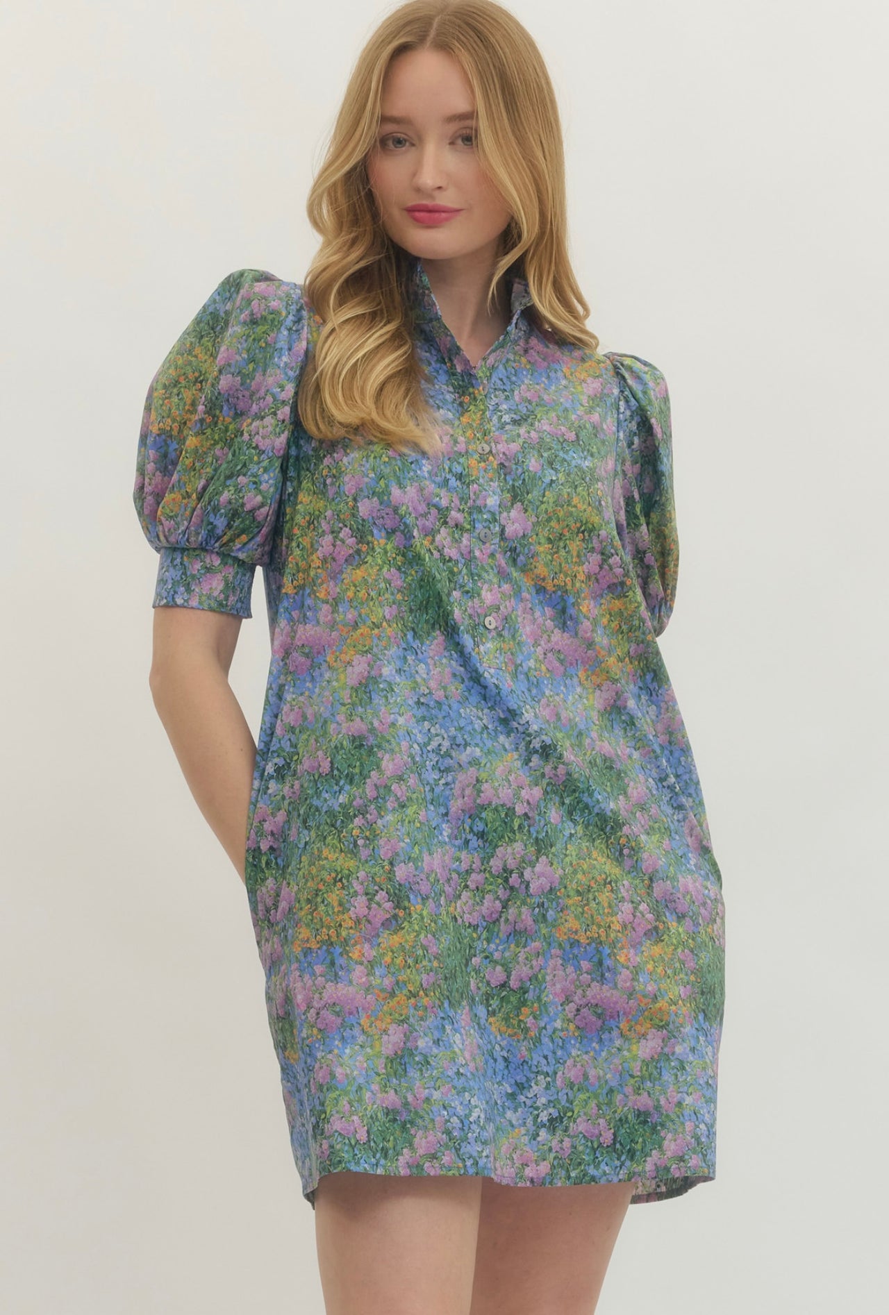This dress is giving walking through a blooming garden energy 🌼💐 The vibrant floral print is full of rich blues, greens, and soft pops of color that feel fresh, cheerful, and effortlessly pretty.