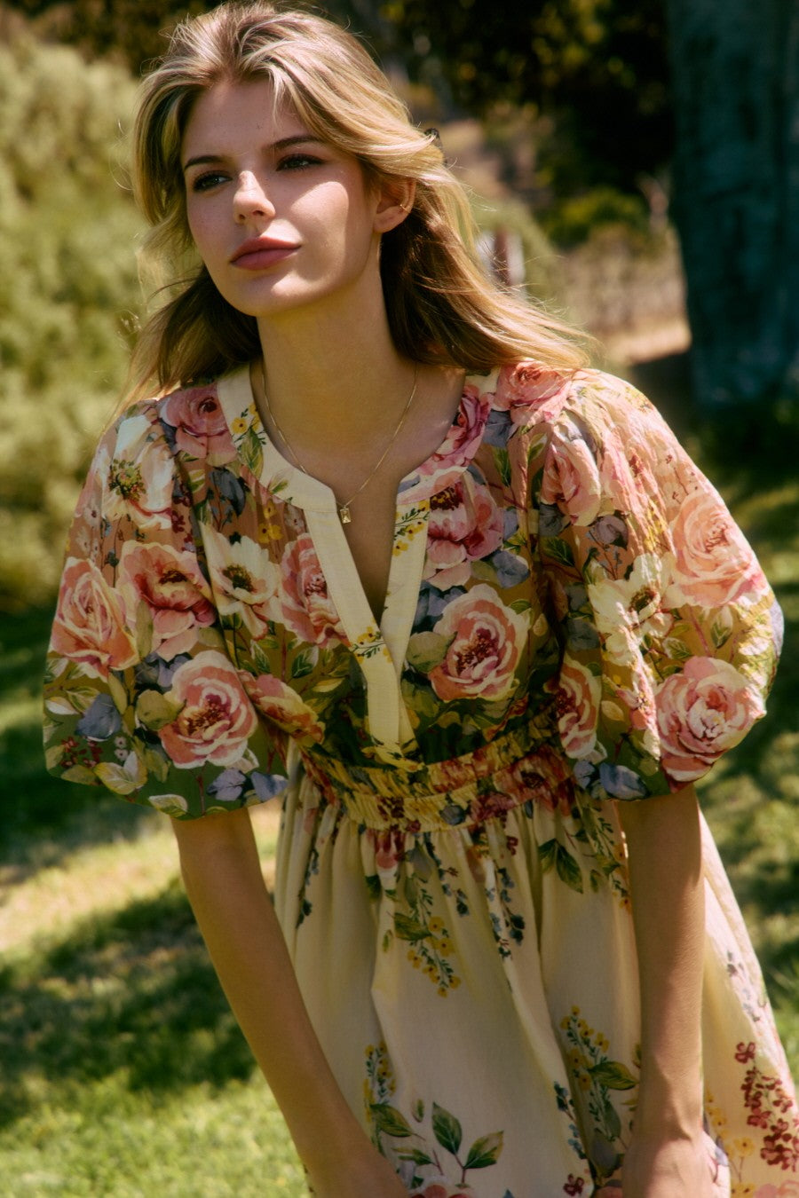Bright, feminine, and made for twirling through sunny days ☀️💐 This dreamy floral midi is giving garden party perfection with the prettiest mix of soft yellows, rosy pinks, and leafy greens 😍