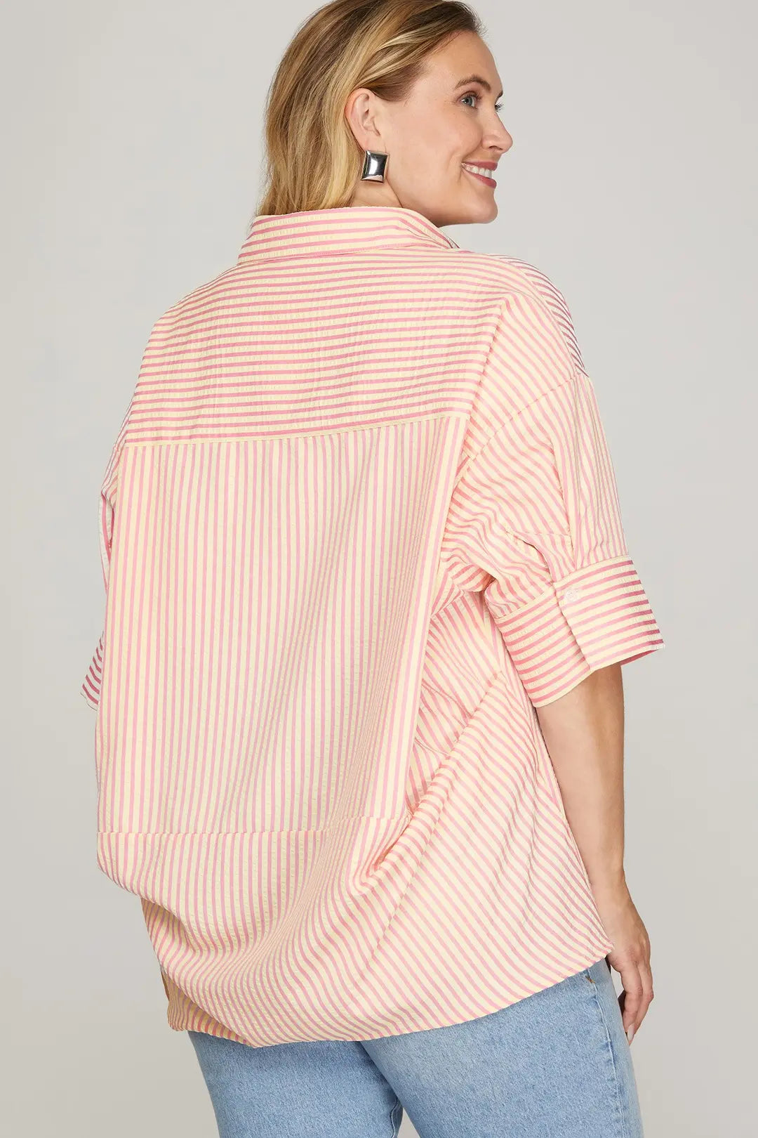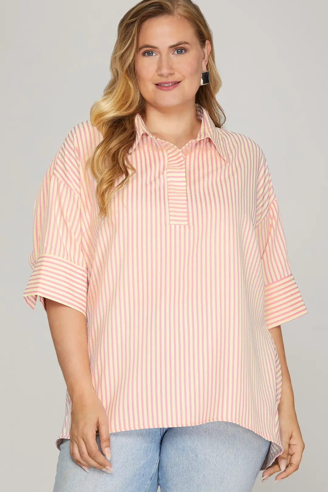 The PLUS Delicate Days Stripe Top is the definition of easy, everyday charm with a polished twist 💕✨ Featuring soft pink and ivory stripes, this top brings a fresh, feminine feel that’s both classic and effortlessly cute 🌸🤍 The lightweight fabric drapes beautifully, making it perfect for warm days or easy layering.
