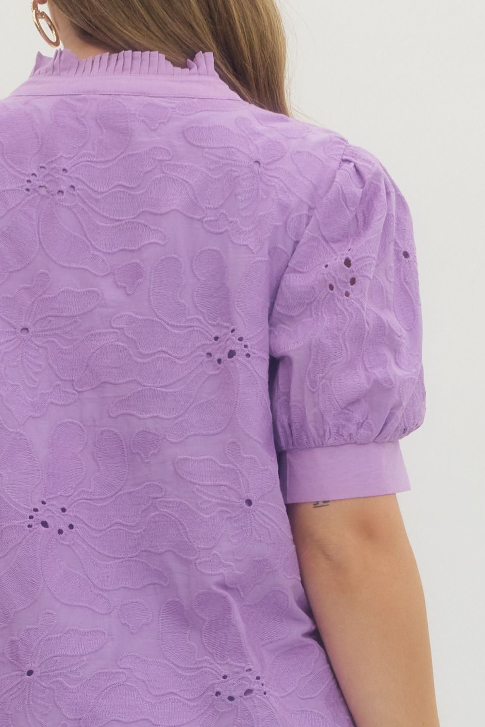 PLUS Lavender Lace Embroidered Eyelet Puff Sleeve Top