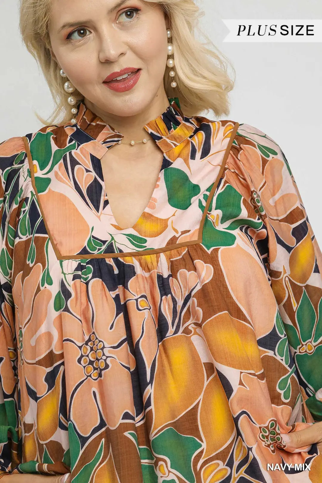 Say hello to your new statement piece: the PLUS Marigold Meadow Floral Top đ»âš. Bold, beautiful, and brimming with retro-inspired charm and LINED, this blouse was made for days when you want your outfit to do the talking. With its oversized floral print in shades of golden marigold, earthy orange, deep green, blush pink, and navy accents, itâs like wearing a wearable gardenâperfect for those who love a pop of personality in their wardrobe.