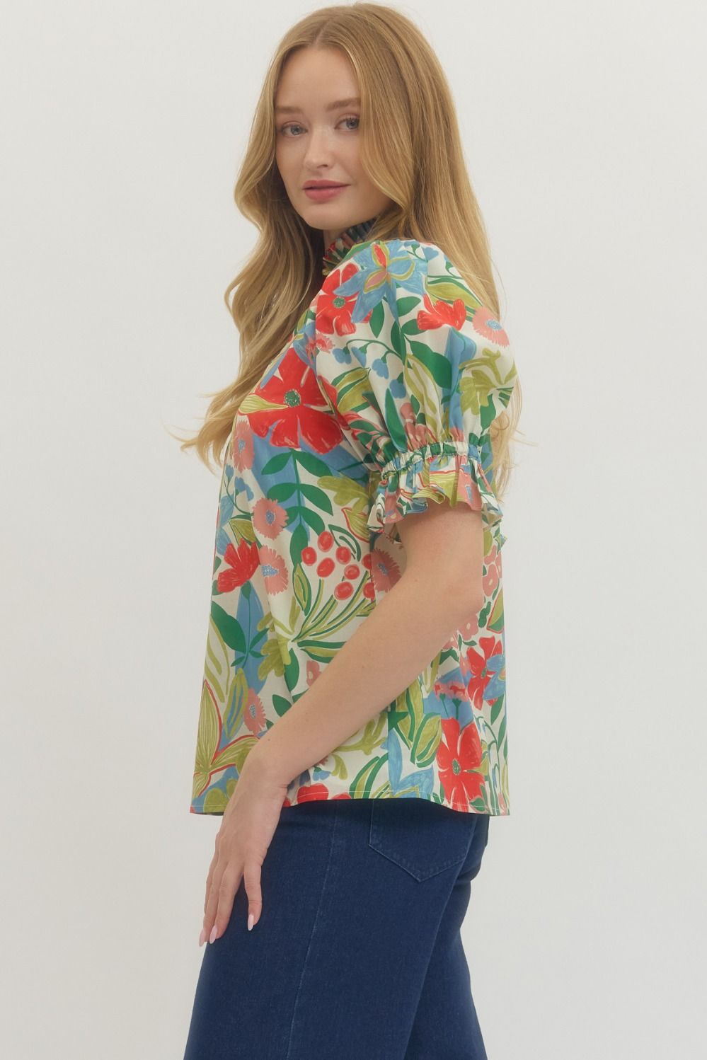PLUS Painted Petals V-Neck Puff Sleeve Top 🌸✨