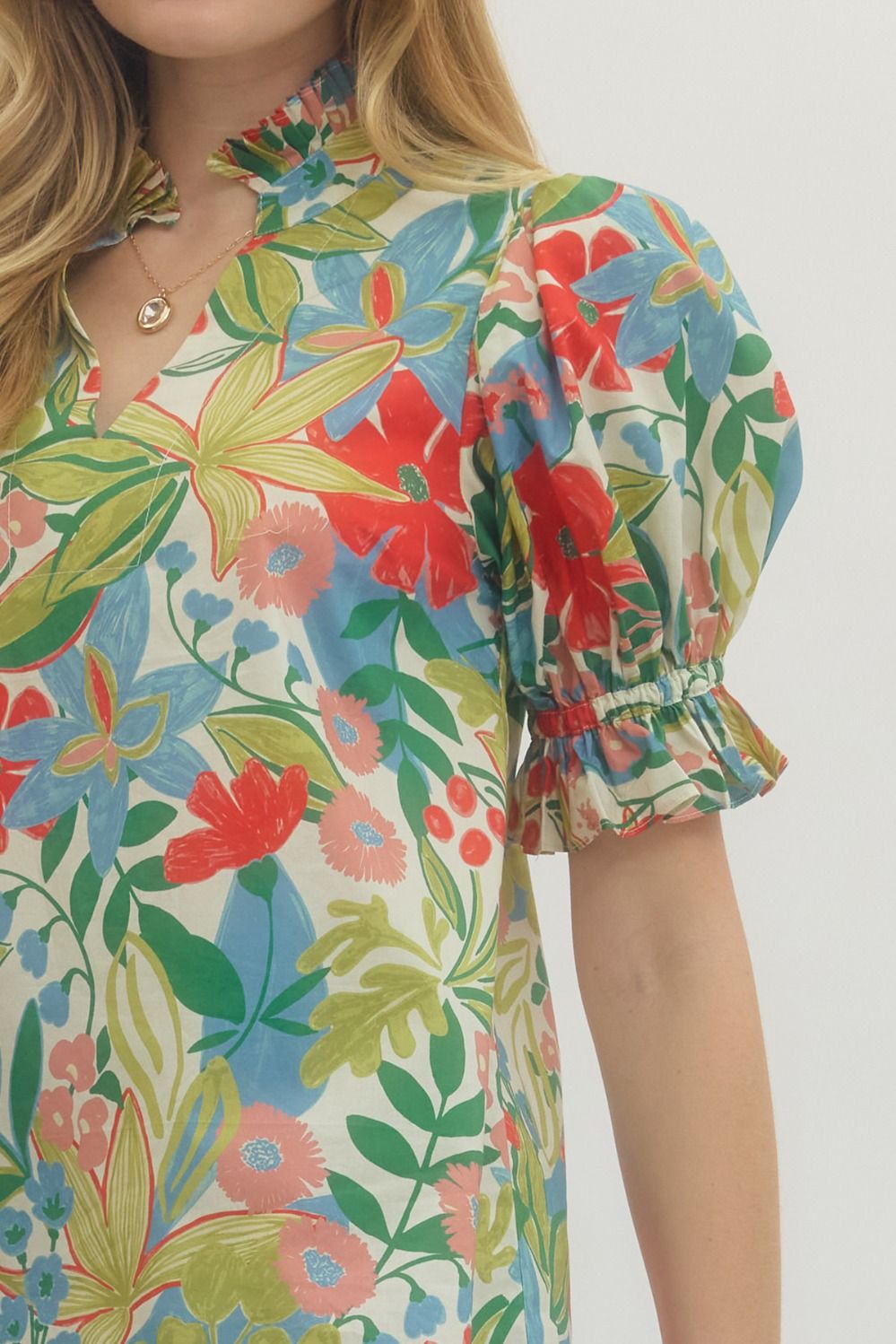 • Puff sleeves with gathered detail