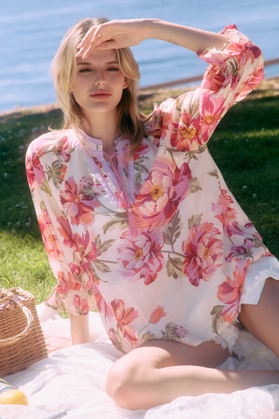 The PLUS Petal Parade Floral Top is giving soft romance with a playful pop of color, designed to flatter and flow in all the right ways. This beauty features a creamy base sprinkled with vibrant pink florals, finished with a striped neckline and tassel tie that adds just the right touch of charm. It’s the kind of top that feels instantly special while still being easy to wear.