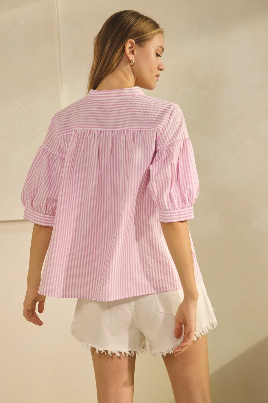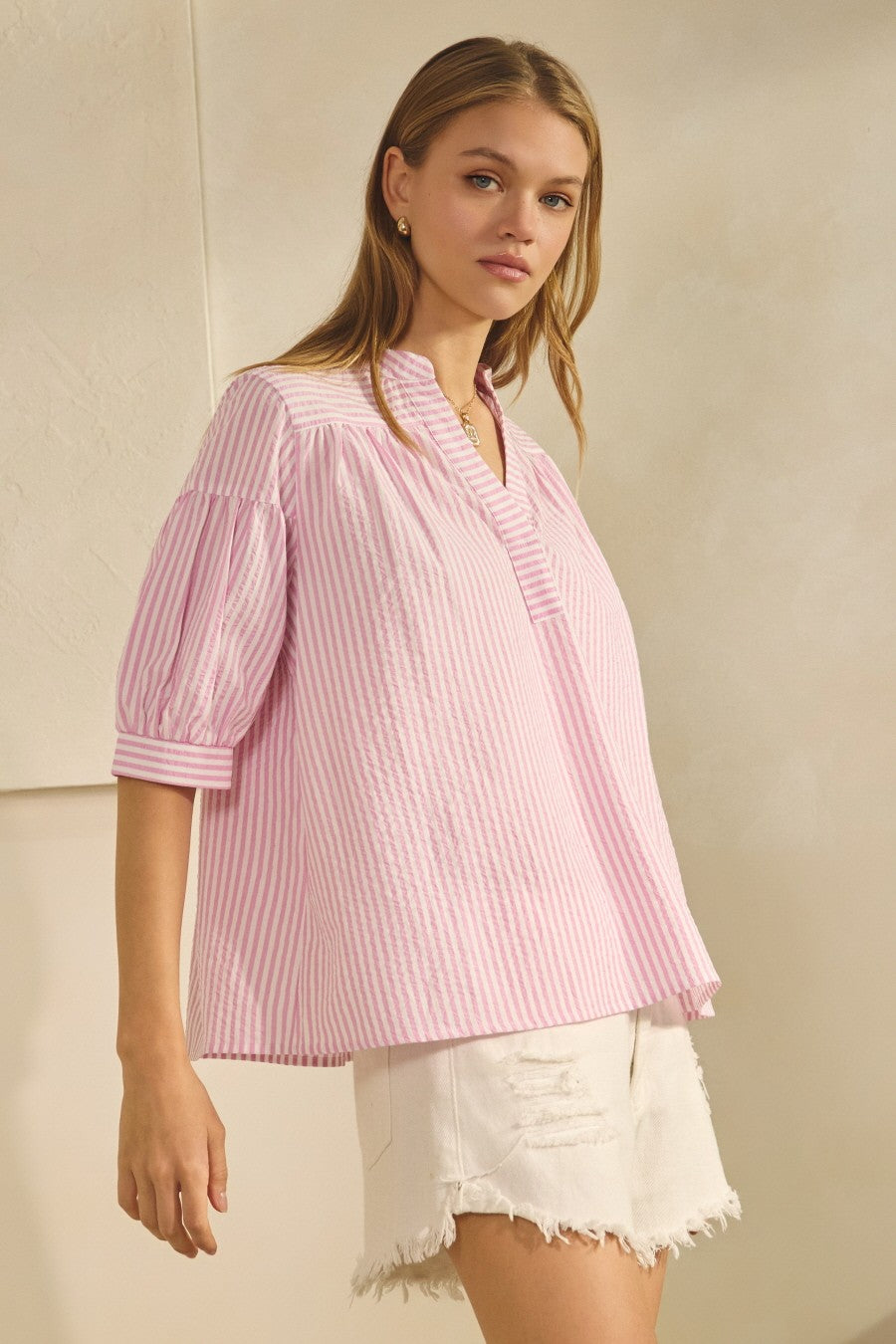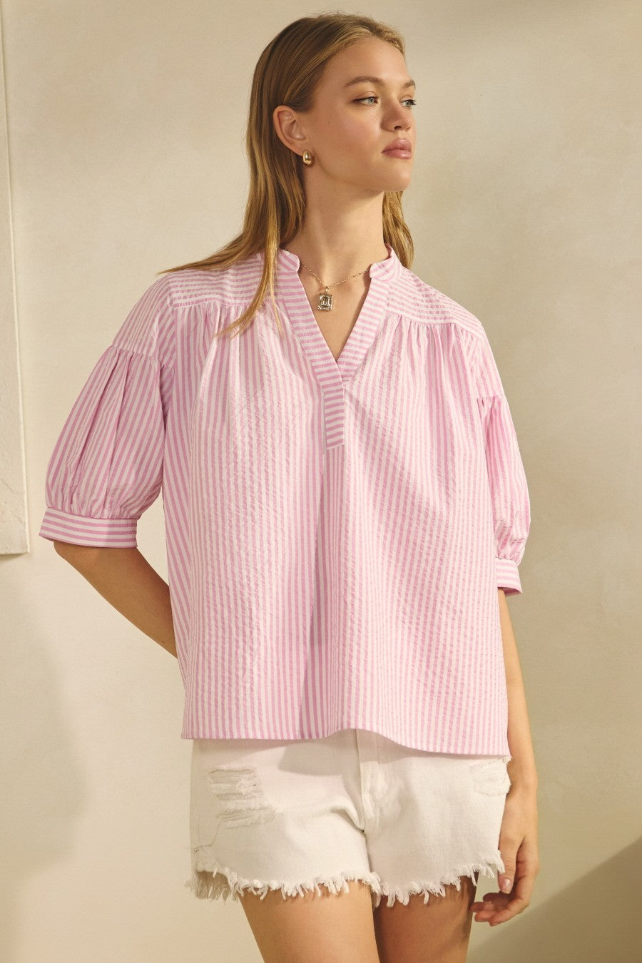 We love the airy, relaxed fit and that notched neckline that adds a little something extra 💕 Plus the puff sleeves bring the perfect dose of girly charm while still keeping it comfy + casual 😍