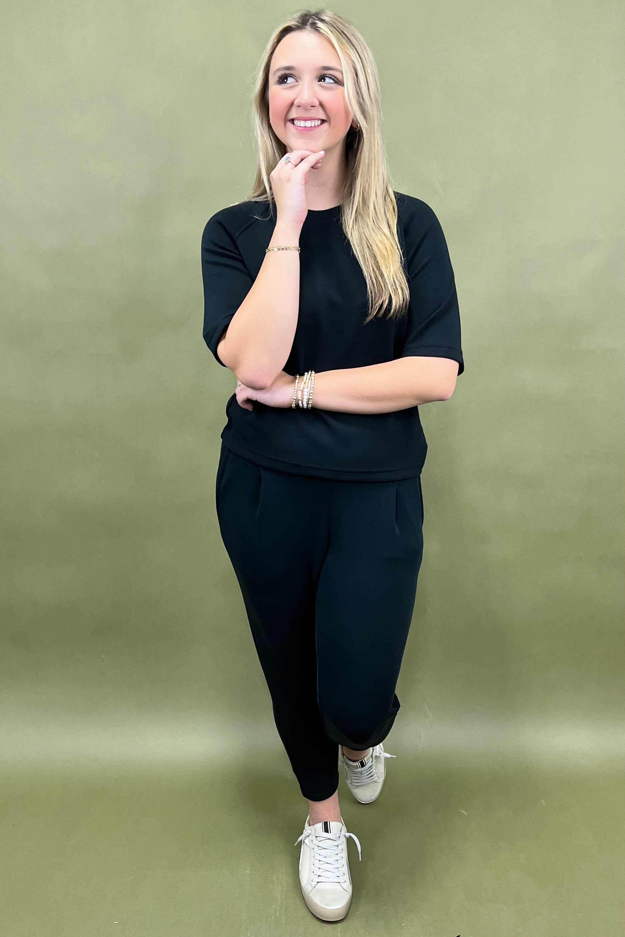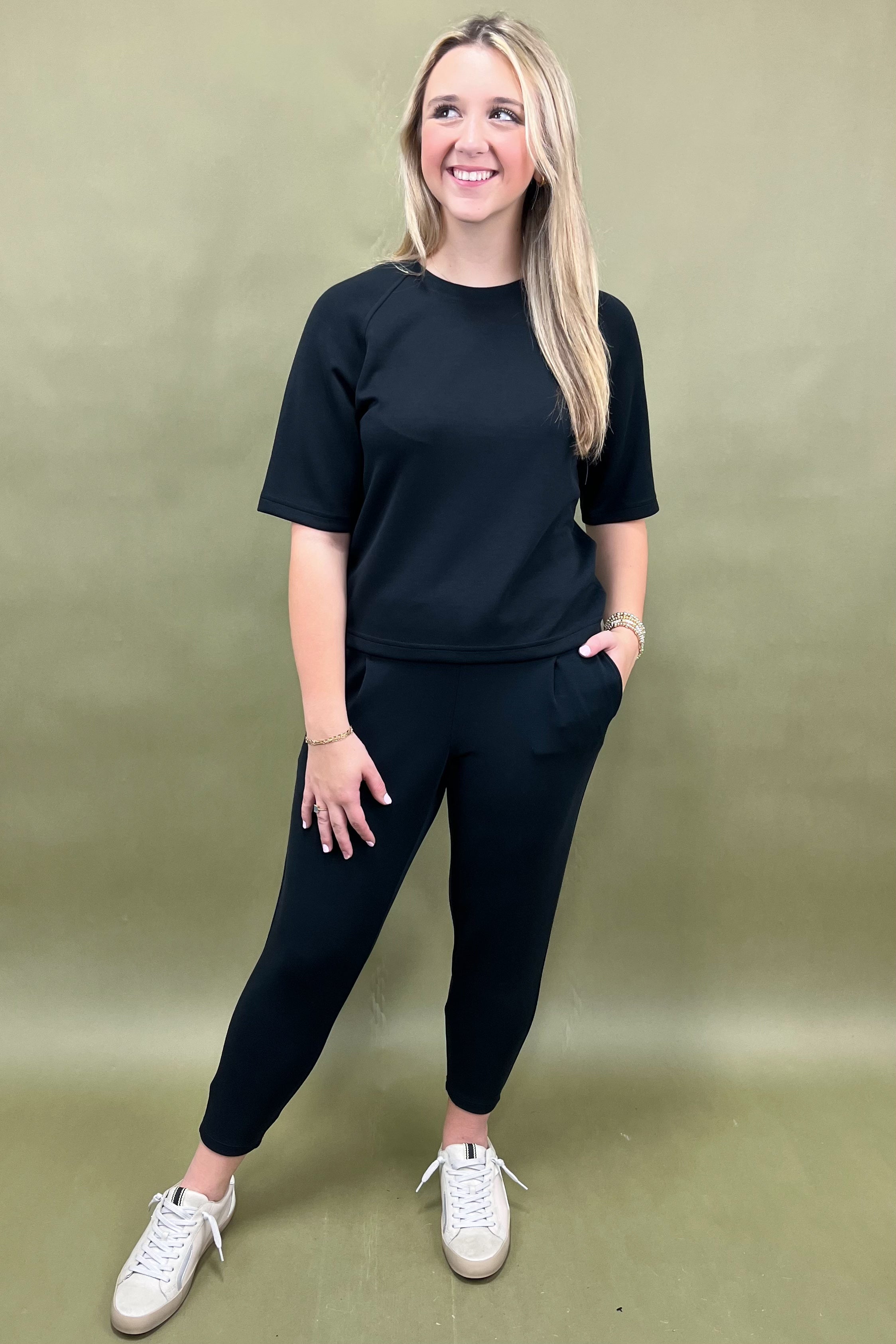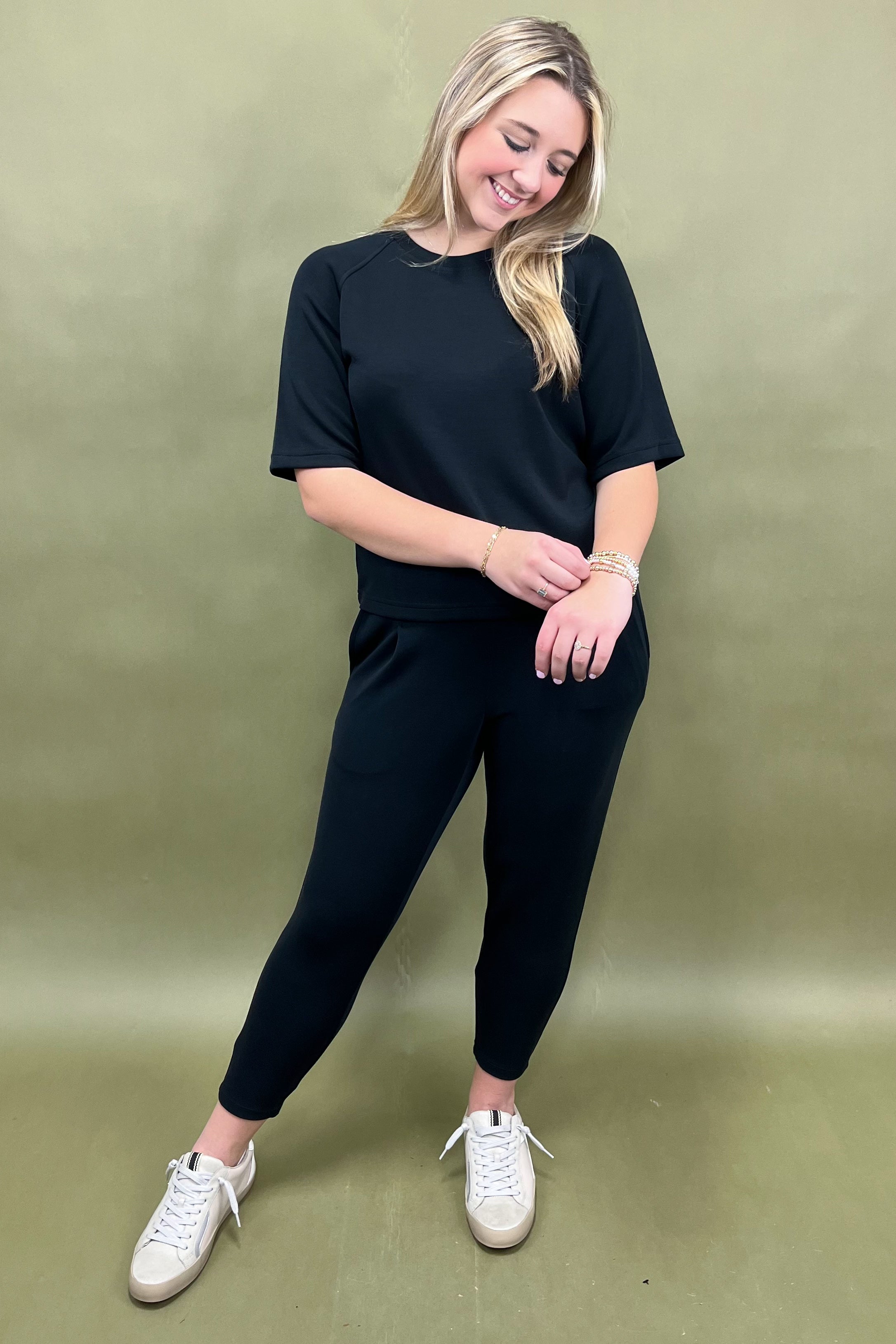 The classic black color keeps things sleek and timeless — think off-duty model meets airport-ready comfort. Soft stretch, breathable fabric, and a flattering drape make this a set you’ll reach for again and again.
