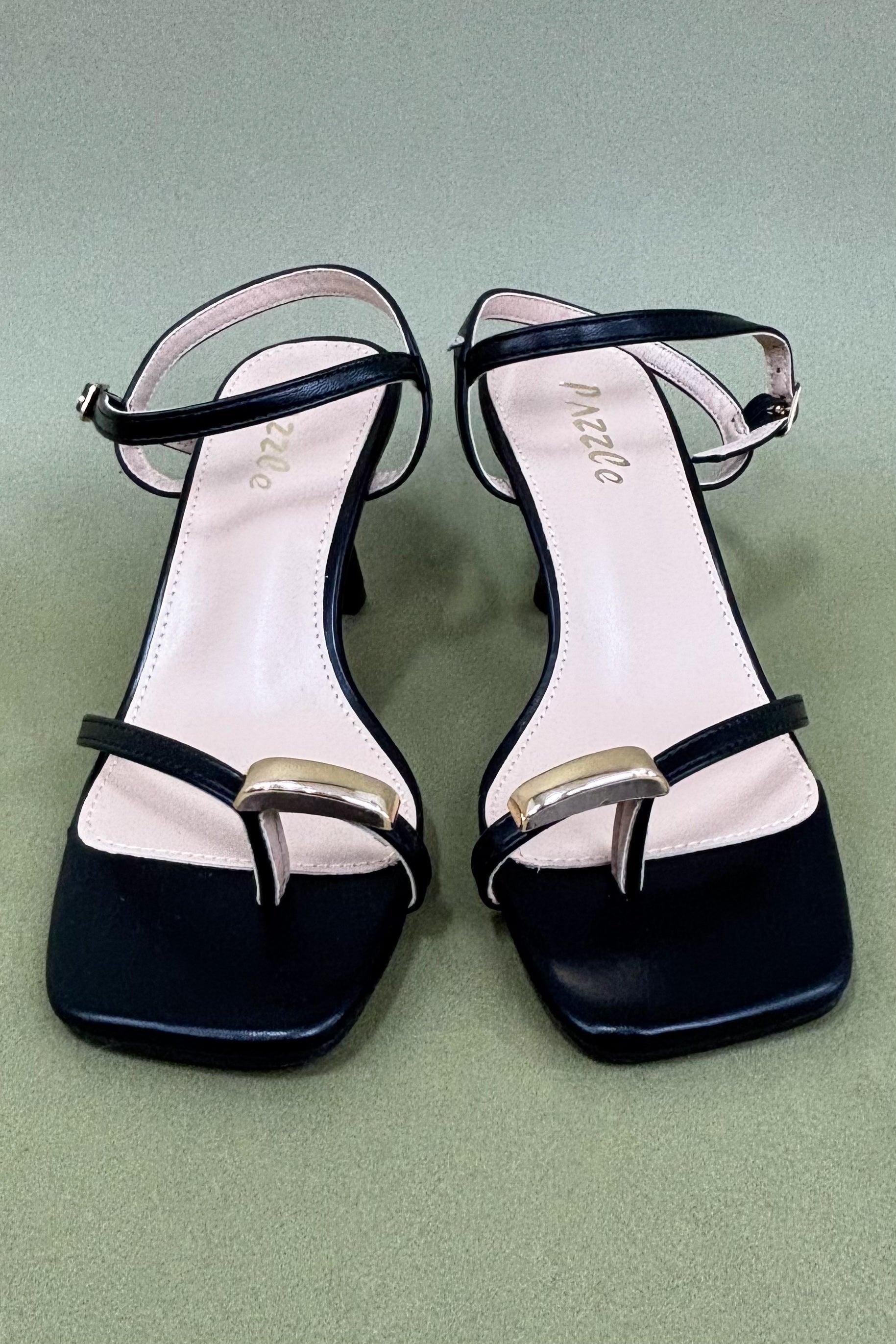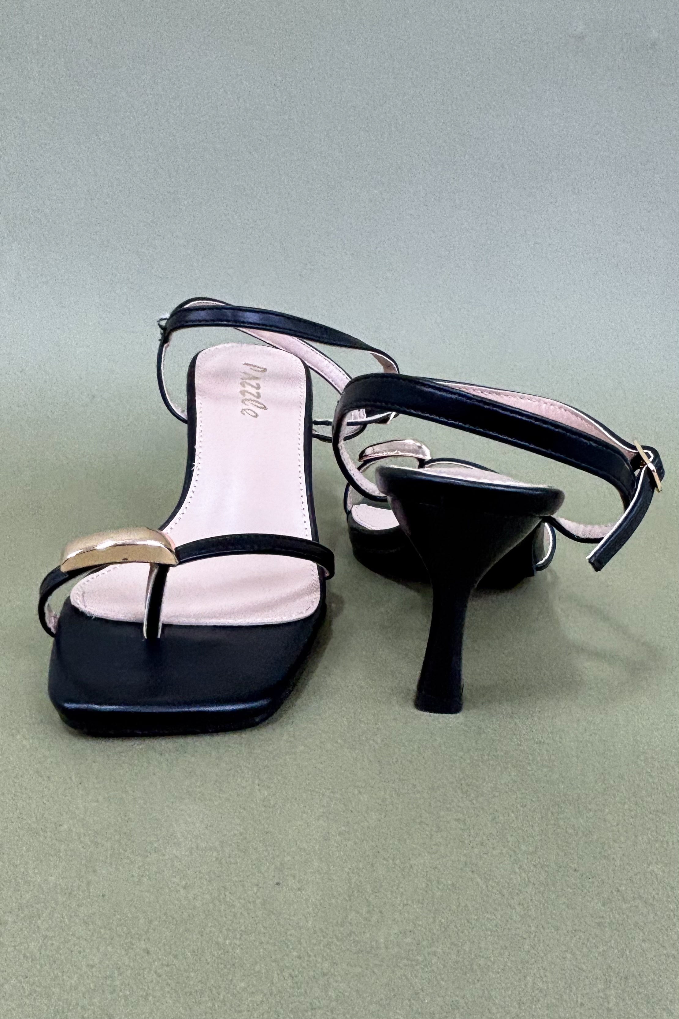 The Athena Black Heeled Sandal is a wardrobe must-have for the modern woman who loves a minimalist look with a statement twist. The combination of classic black and gold detailing makes these heels incredibly versatile â think of them as the shoe that goes with everything. From jeans and blazers to little black dresses, Athena brings a touch of sleek sophistication wherever she goes. Lightweight yet structured, they strike the perfect balance between form and function, making them your go-to pair for everything from cocktail hours to weddings.