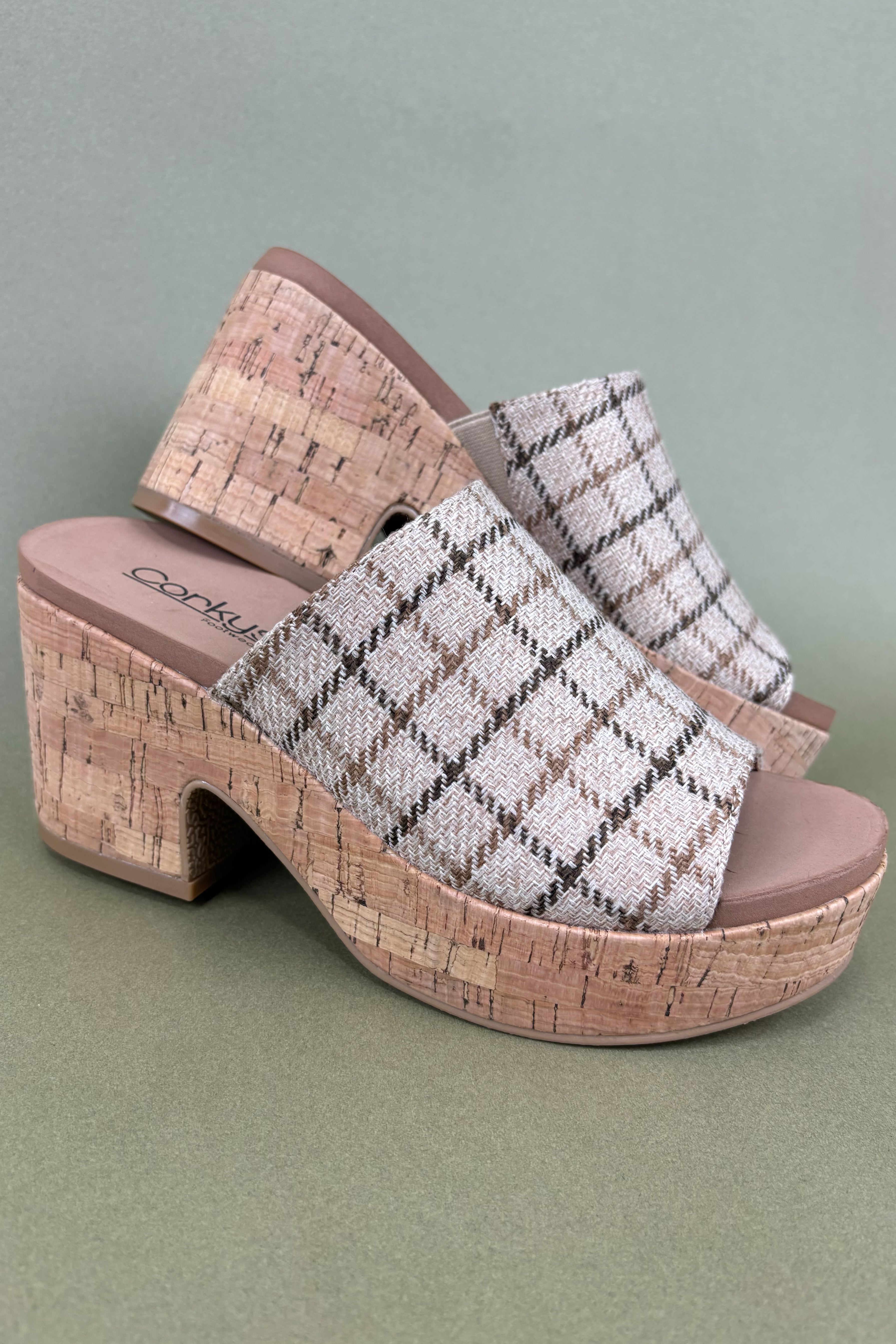 Step into comfort and style with these effortlessly cool cork platform sandals. Featuring a chunky cork heel and platform base, paired with a soft woven plaid strap, these shoes blend laid-back vibes with a touch of retro charm. They’re lightweight, easy to slip on, and designed to give you height without sacrificing comfort. Perfect for pairing with everything from flowy sundresses to cropped jeans, these platforms are your new warm-weather favorite. The neutral plaid print adds just the right amount of texture, making them versatile enough to dress up or down for any occasion.