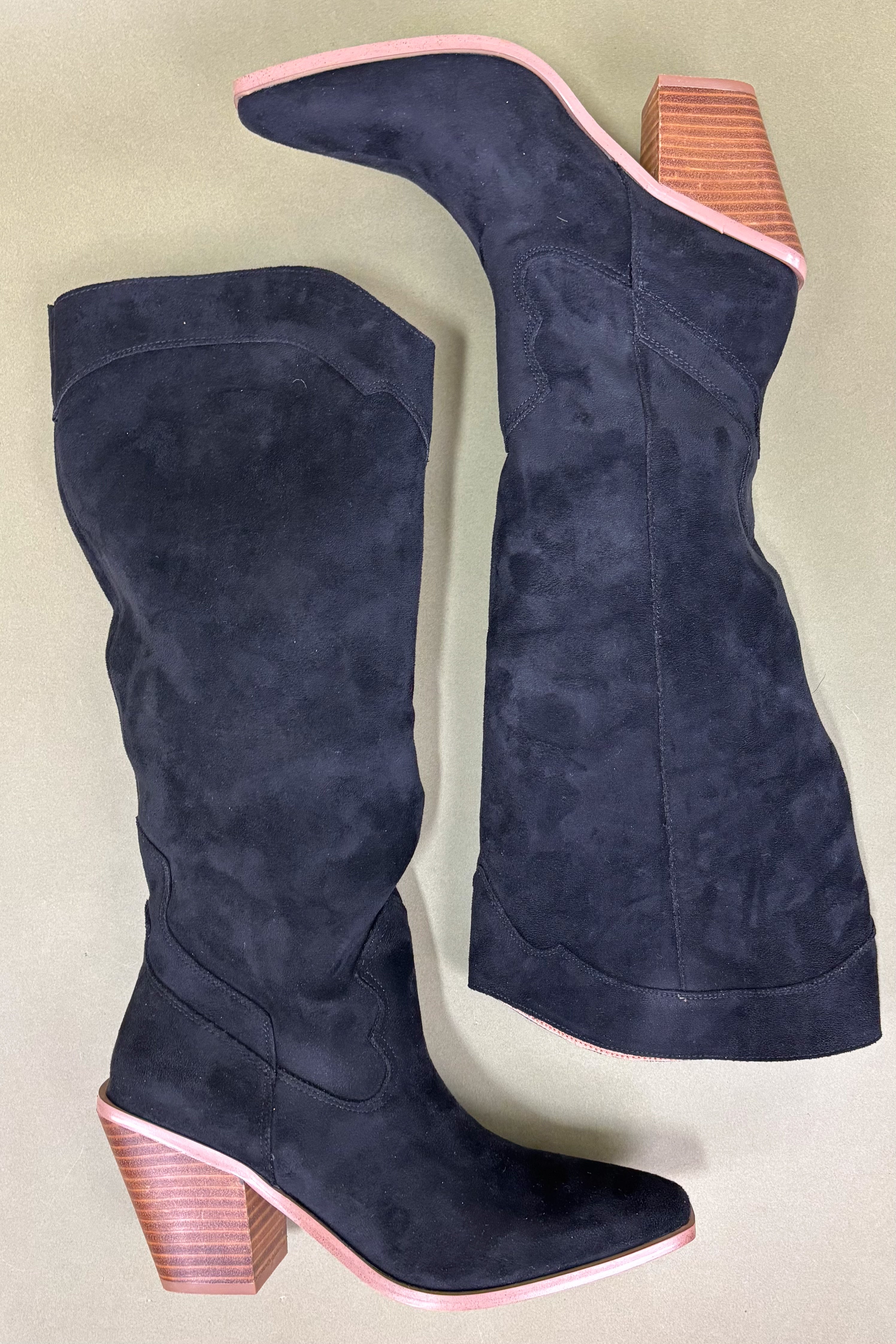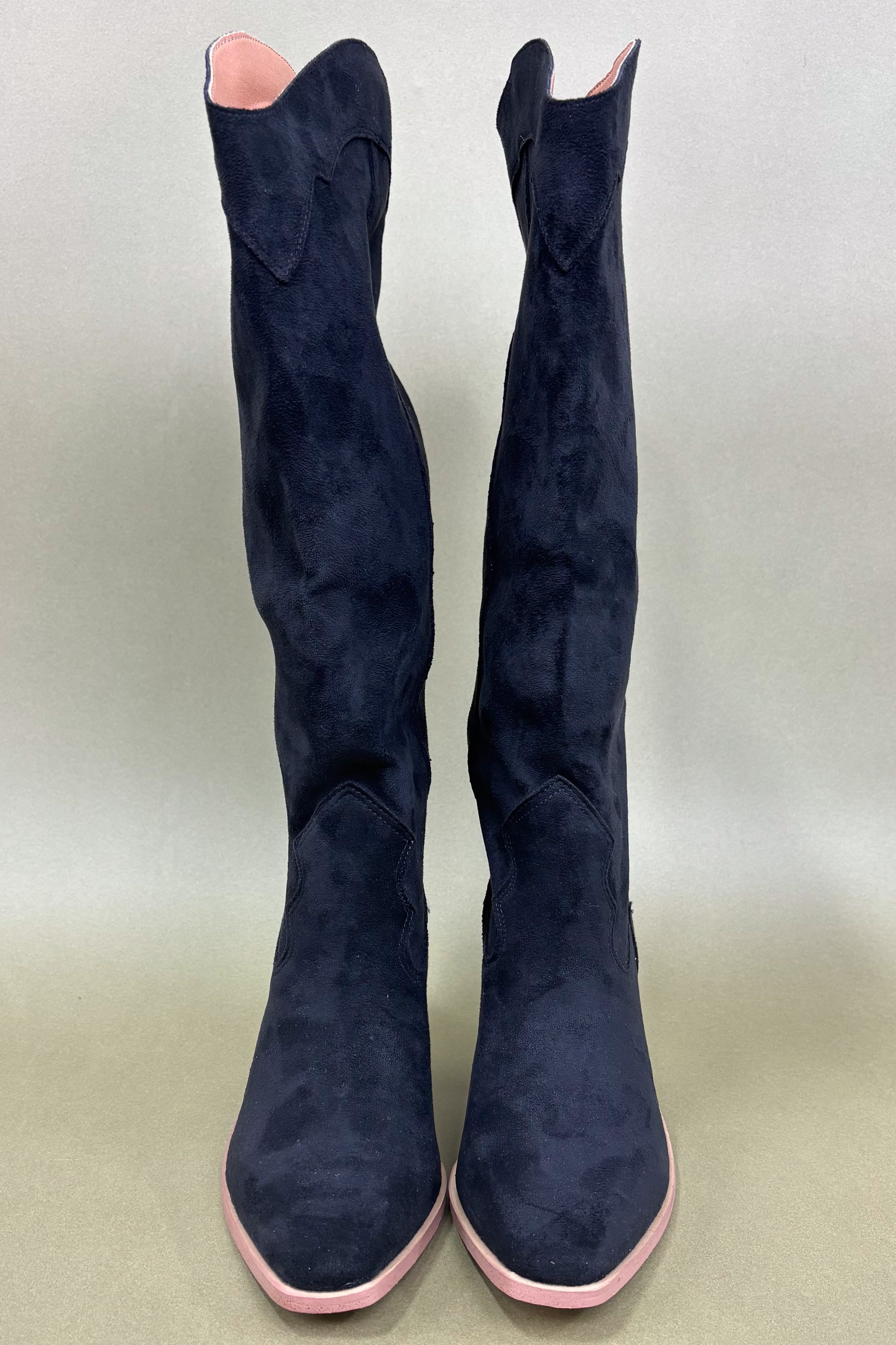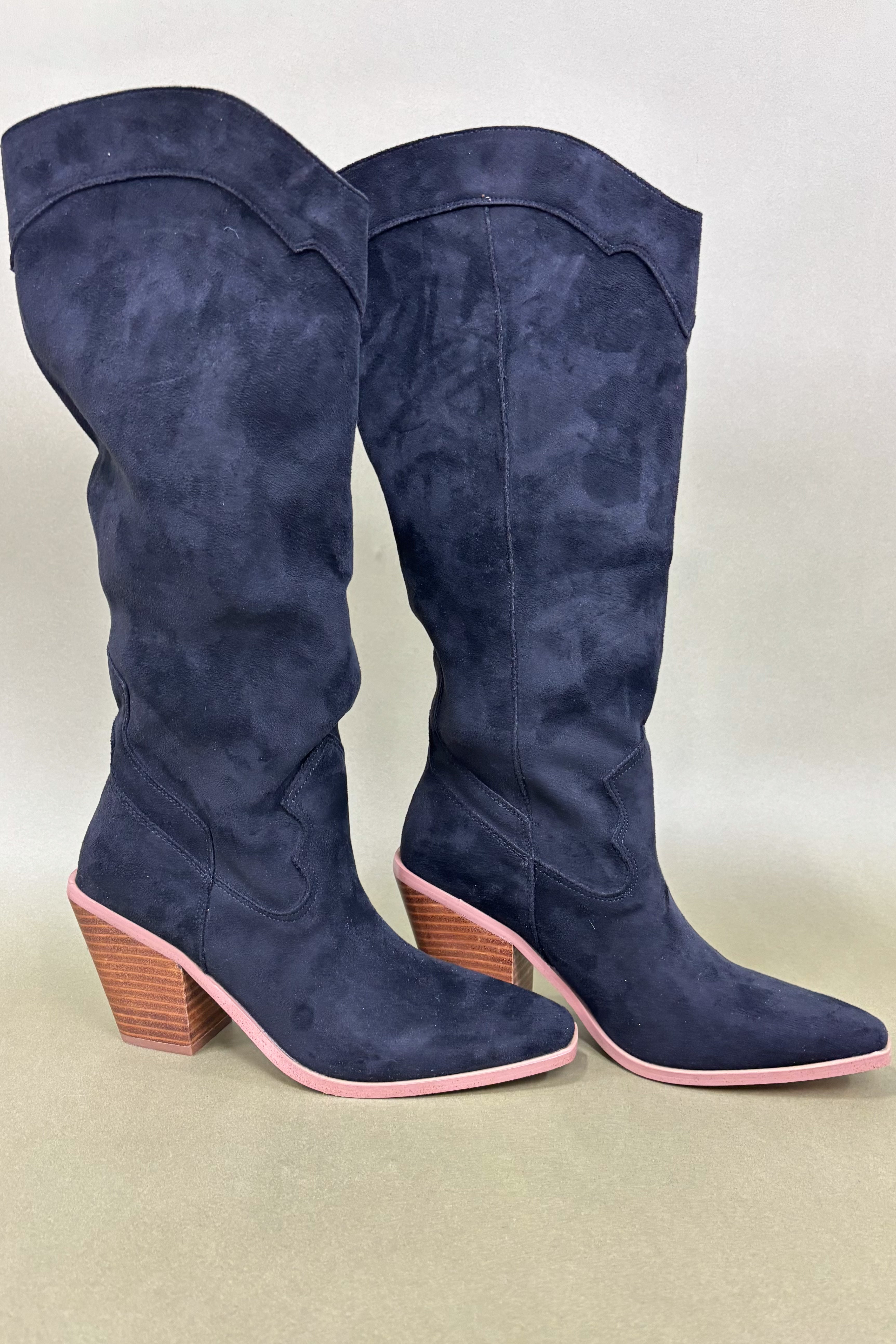 The Isabelle Faux Suede Boots are where classic western energy meets modern femininity. The navy suede gives them a fashion-forward edge, perfect for anyone who loves a statement piece that still feels refined. Isabelle pairs beautifully with light neutrals, warm fall tones, or even all-black for a sleek contrast moment. They’re those boots you’ll reach for again and again — timeless yet trendy, elegant yet bold.
