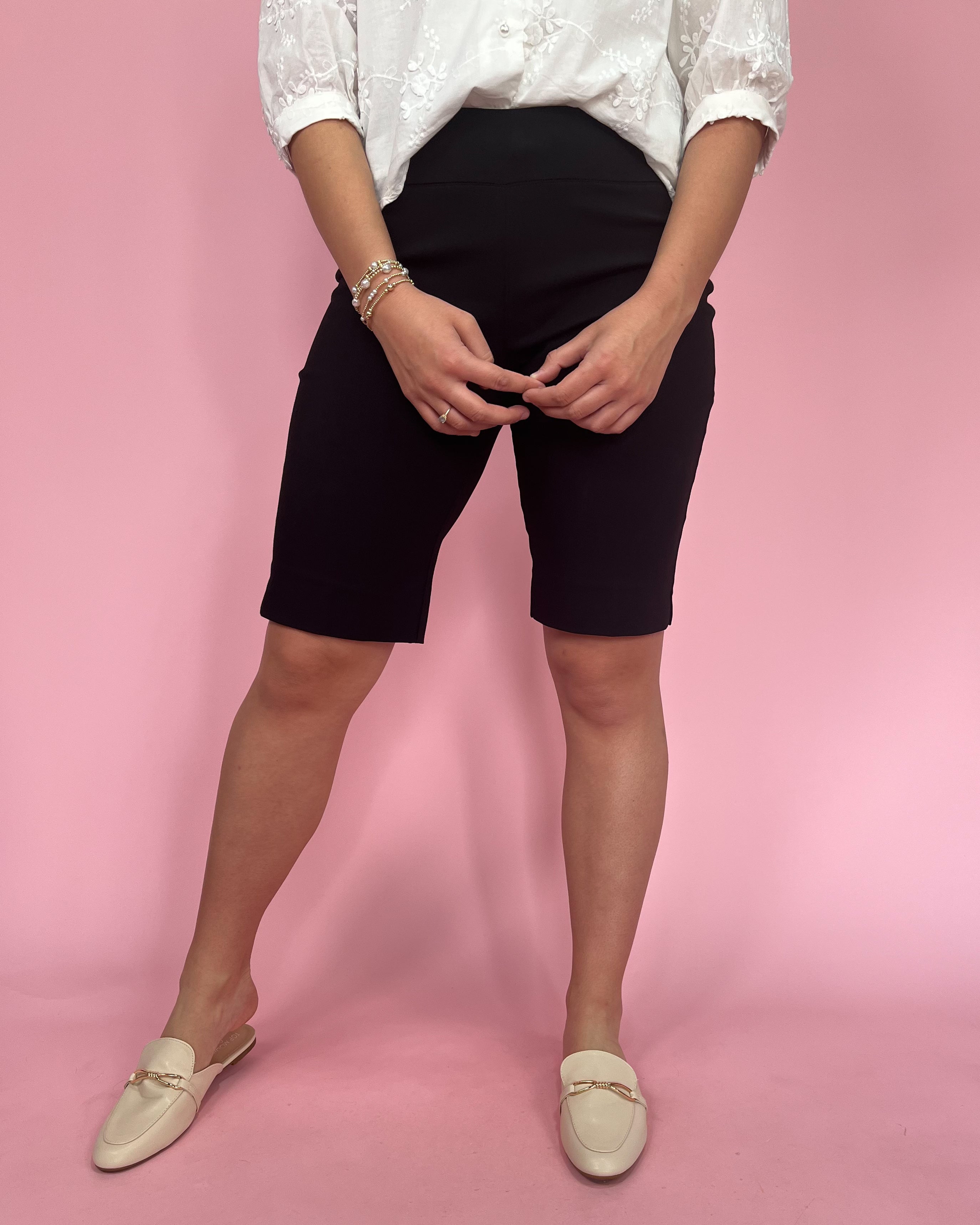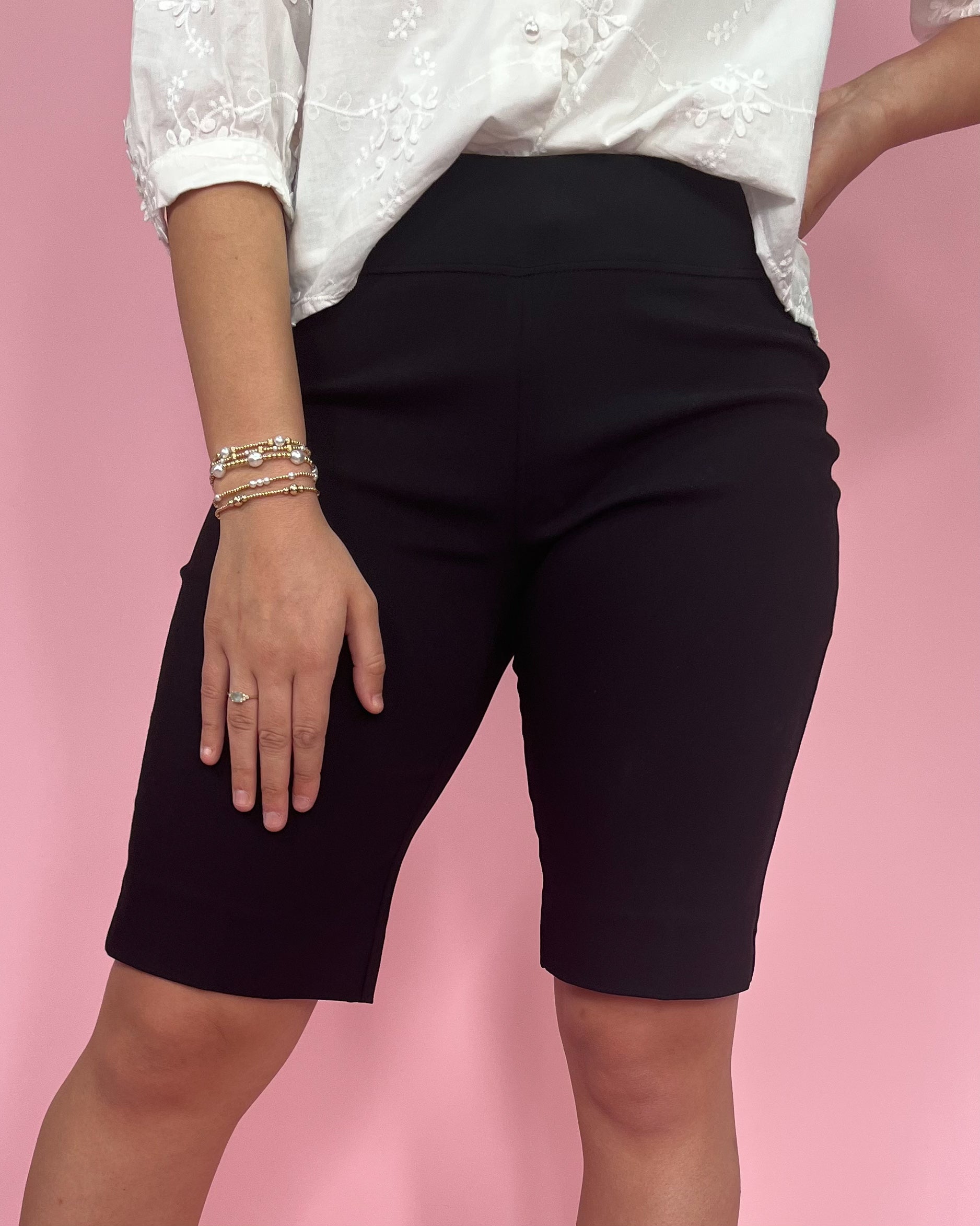 Polished, flattering, and effortlessly comfortable — The Farah Bermuda Pull-On Shorts is the elevated essential your wardrobe needs. Designed with a clean, tailored look and an easy pull-on waistband, these give you that structured, put-together vibe without sacrificing comfort.