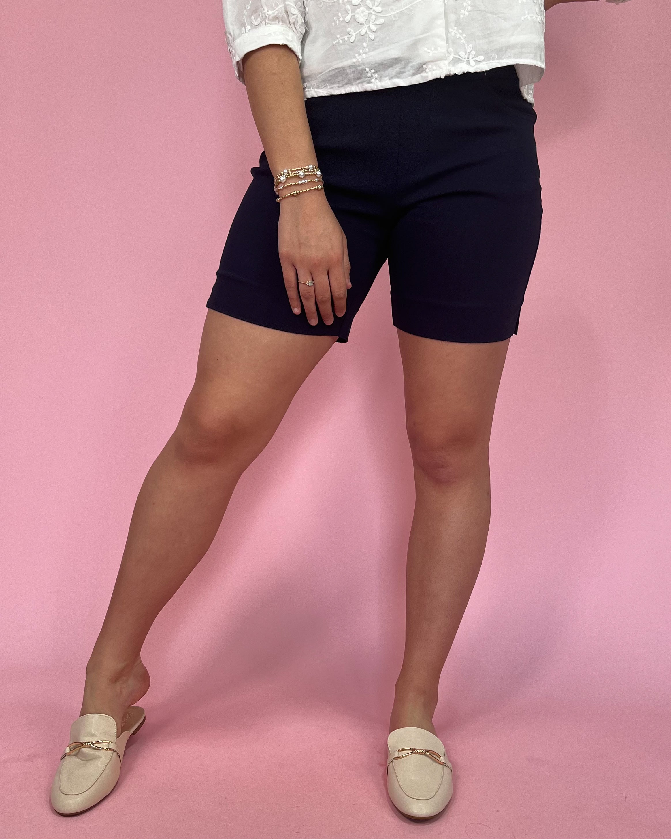 Polished, comfortable, and endlessly versatile — The Tailored Trend Pull-On Shorts are the perfect blend of structure and stretch. Designed with a smooth pull-on waistband and a clean, tailored silhouette, these give you that put-together look without sacrificing comfort.