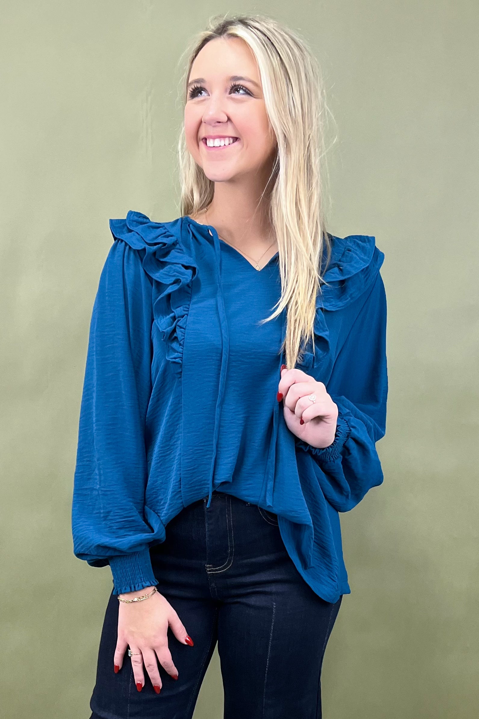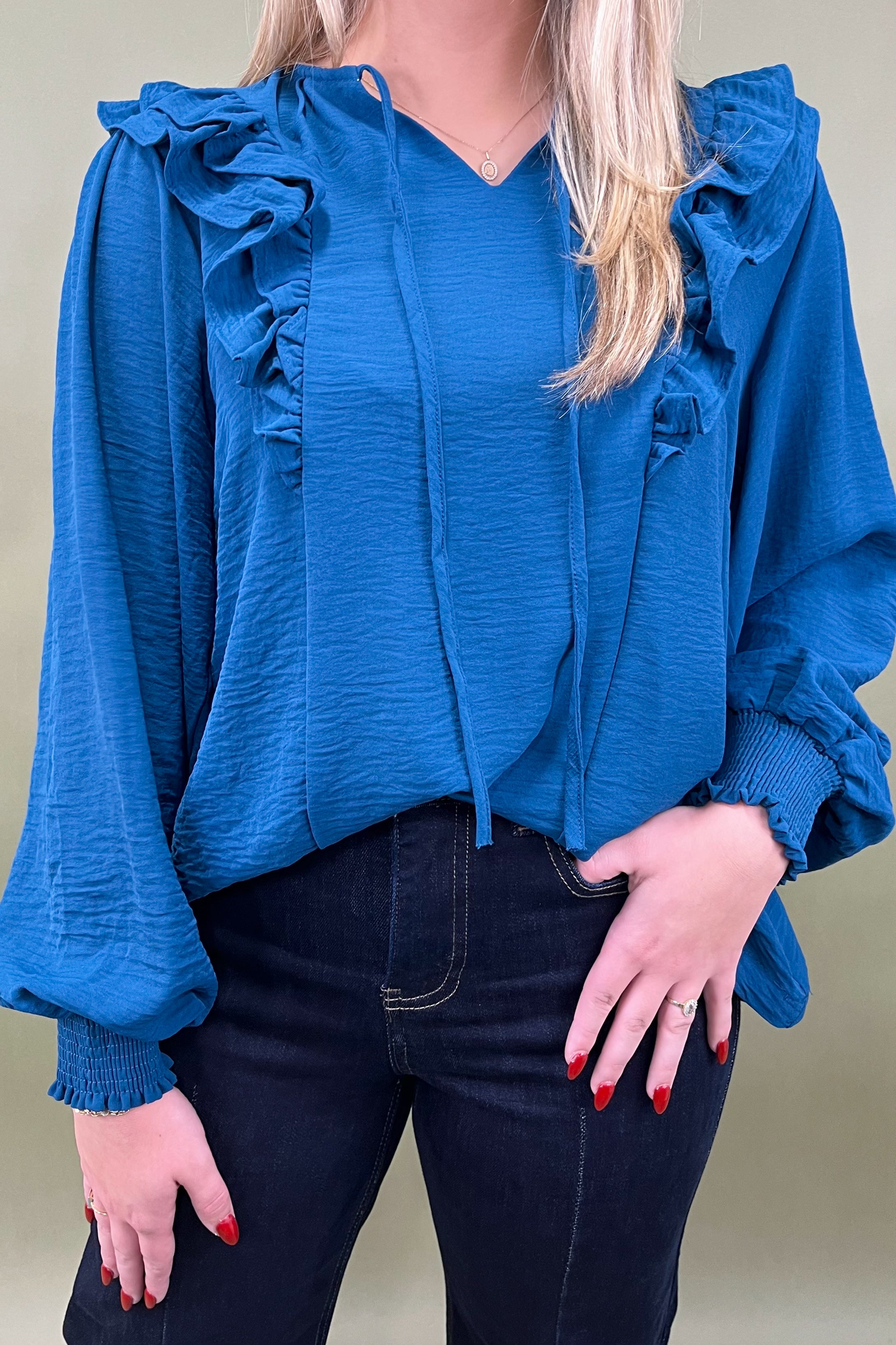 Meet your new go-to for everyday adventures—the City Stroll Top. With its breezy silhouette, playful ruffle details, and smocked cuffs, this piece strikes the perfect balance between polished and relaxed. Whether you’re exploring new corners of the city or just catching up with friends over coffee, it’s the kind of top that makes “effortless chic” feel easy. 🌆✨