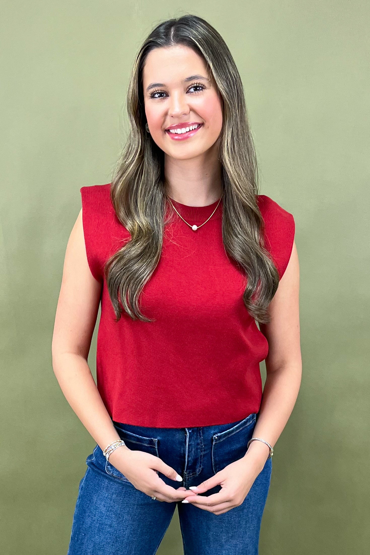 Turn up the heat with The Ruby Hot Shot Knit Top — a bold and modern essential that gives effortless confidence with every wear 🔥 This sleek, sleeveless knit is all about minimal lines and maximum impact. With its vibrant red hue and clean-cut silhouette, it’s the kind of top that instantly elevates any outfit, from casual denim days to chic night-out looks.