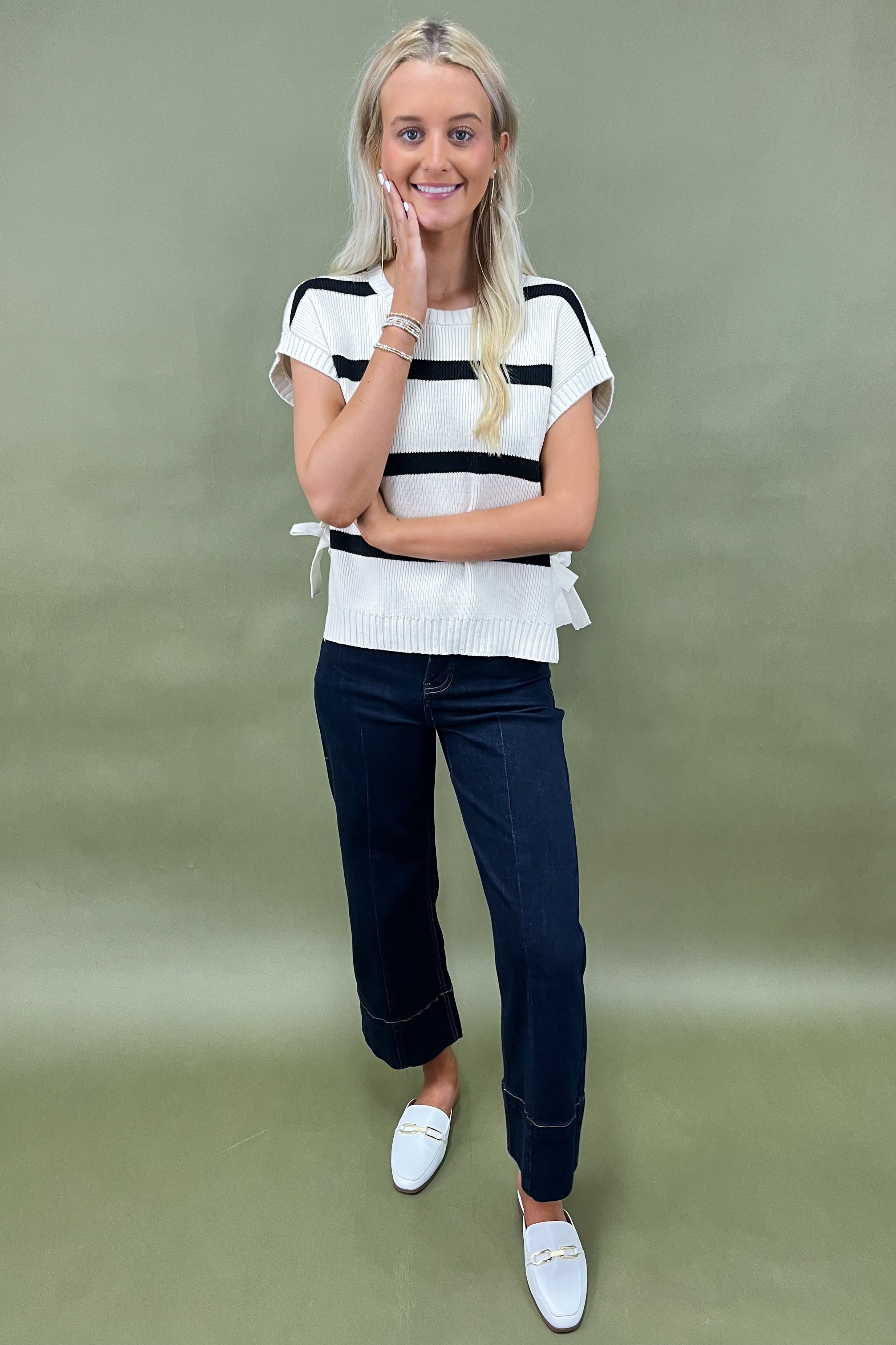 Say hello to your new classic-with-a-twist knit: the Sail Away Sweater ⛵🤍. With its timeless navy-and-cream stripes and darling tie-side details, this piece is giving major coastal-chic energy. It’s equal parts relaxed and polished — perfect for everything from seaside strolls to cozy coffee dates.