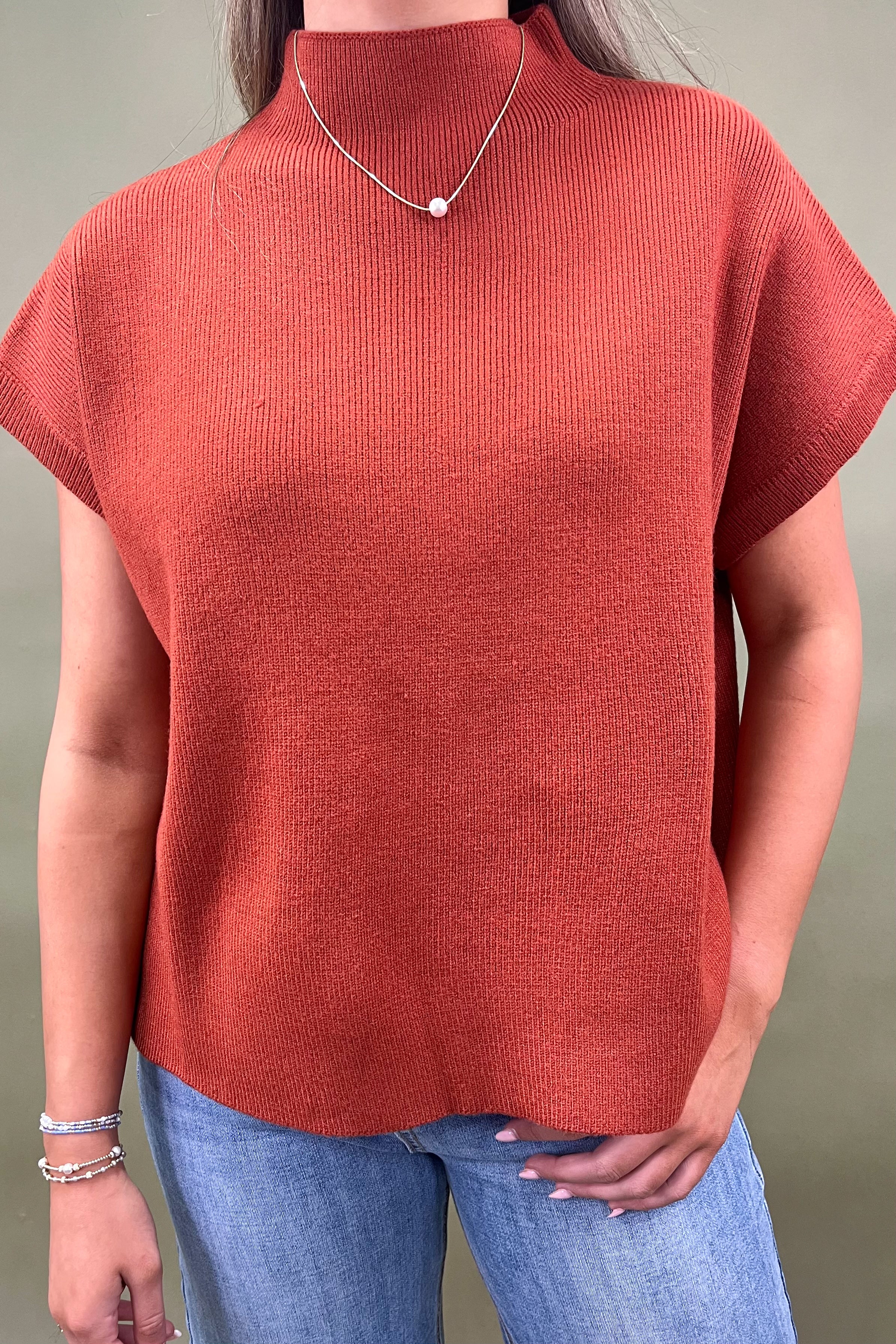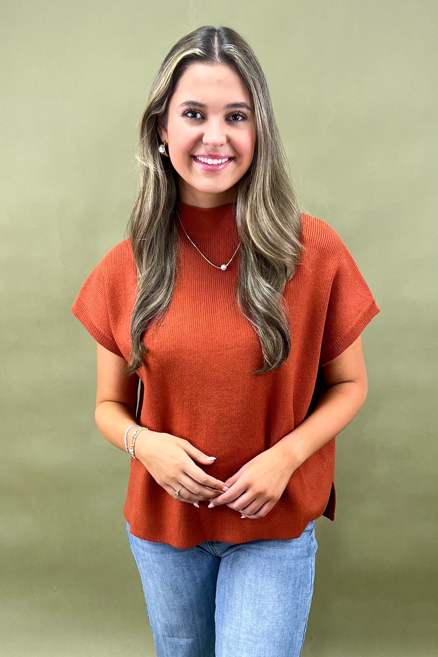 The mock neckline is equal parts modern and cozy, giving you that elevated look while still staying super comfortable. The boxy, relaxed fit makes it easy to wear solo or layeredâitâs loose without feeling shapeless, structured without being stiff. Sleeveless and lightweight, this sweater is ideal for creating endless layered looks, whether youâre popping it over a crisp collared blouse, sliding it under a denim jacket, or rocking it bare-armed with wide-leg pants and booties.