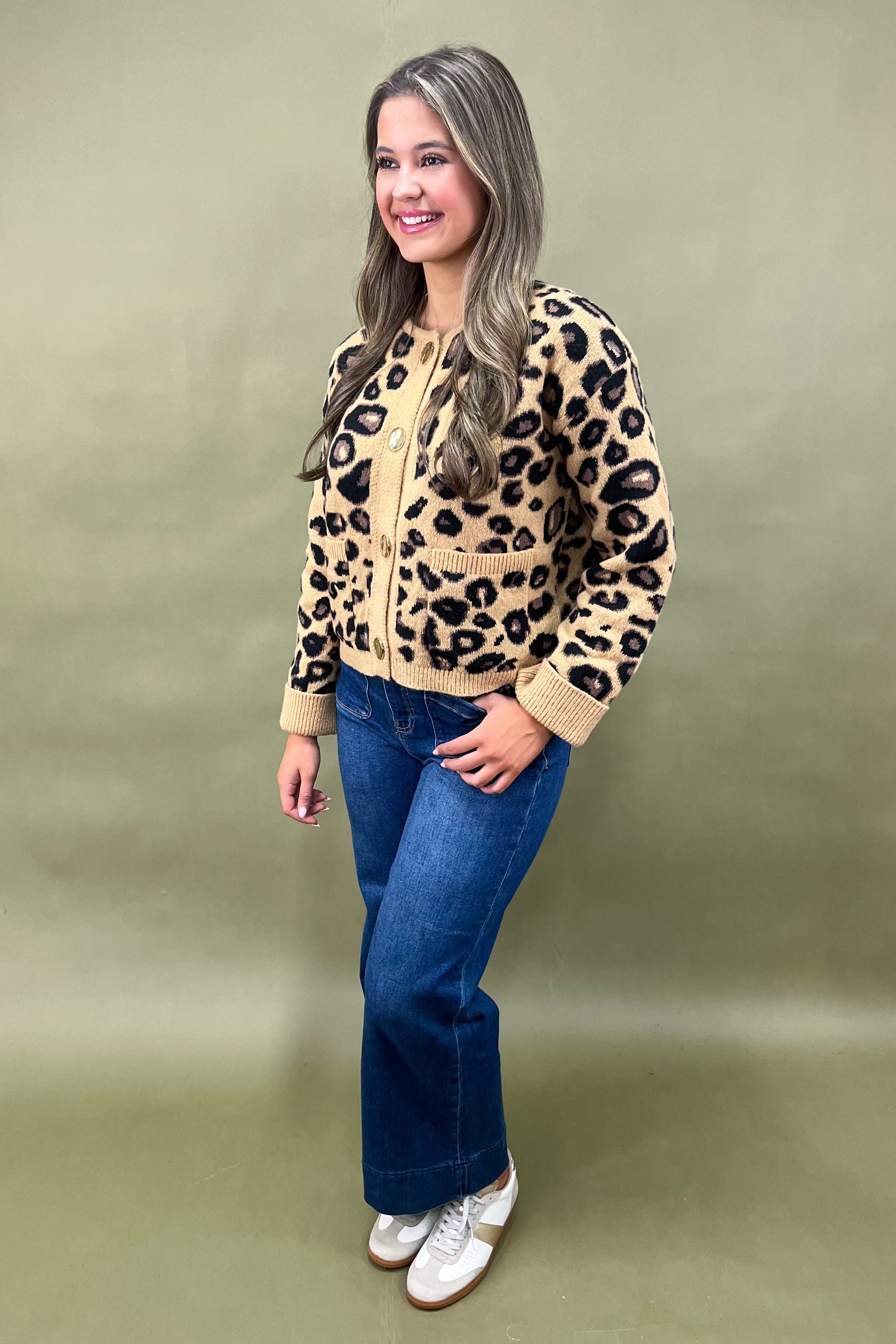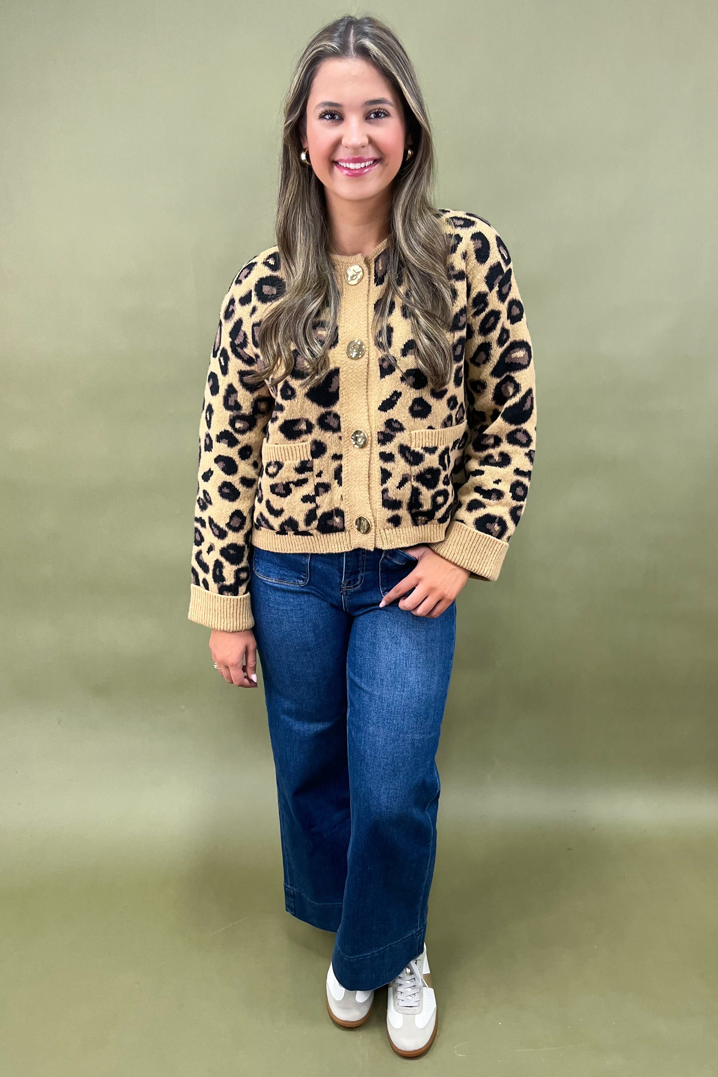 Let’s start with the print: a classic leopard pattern in rich caramel and deep black tones that’s bold, timeless, and just the right amount of wild. Leopard never goes out of style—it’s practically a neutral at this point—and this cardigan proves it. Toss it on with jeans and sneakers for weekend errands, or layer it over a sleek slip dress and boots for cocktails with the girls. It’s versatile enough to take you from casual afternoons to dressed-up evenings without missing a beat.