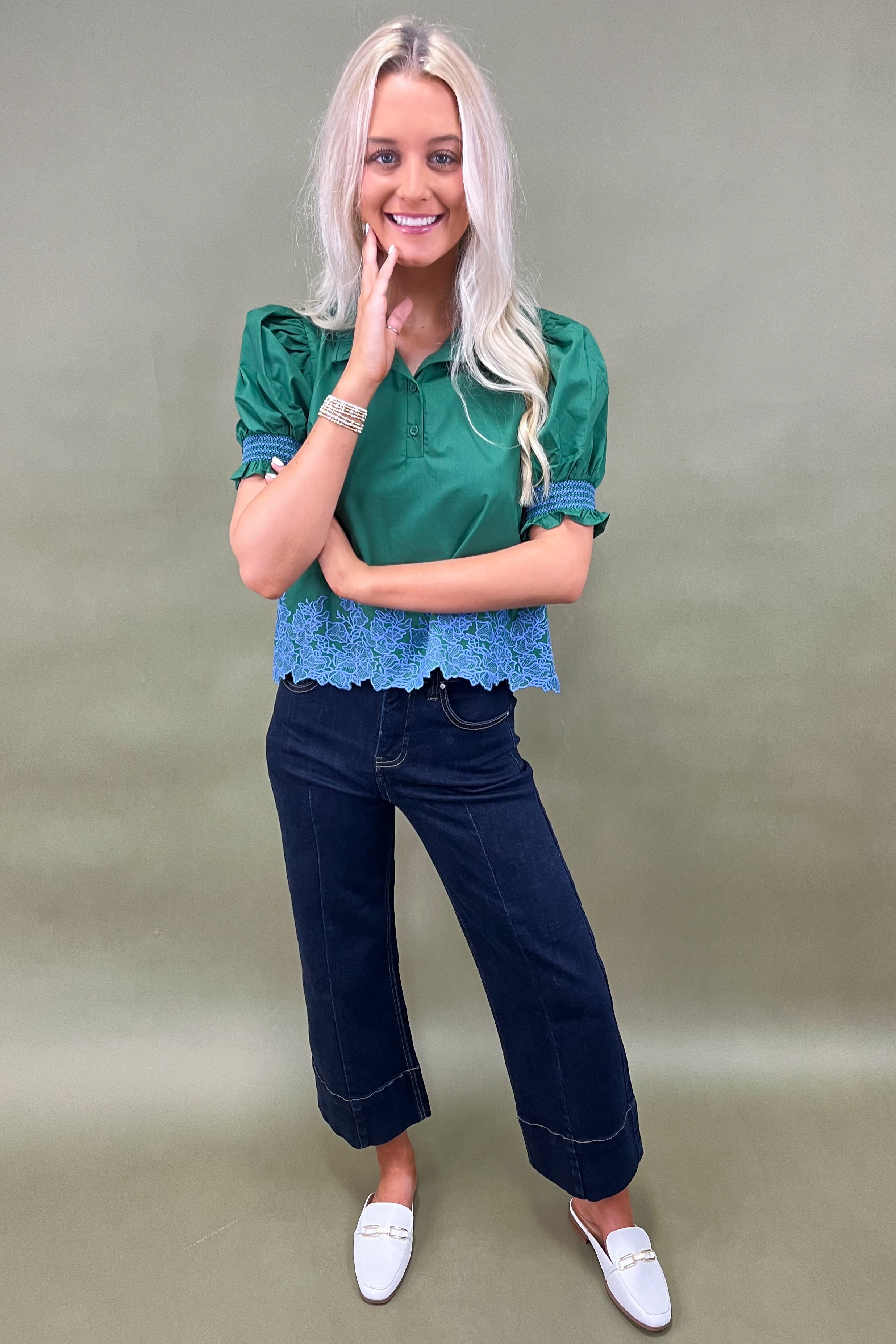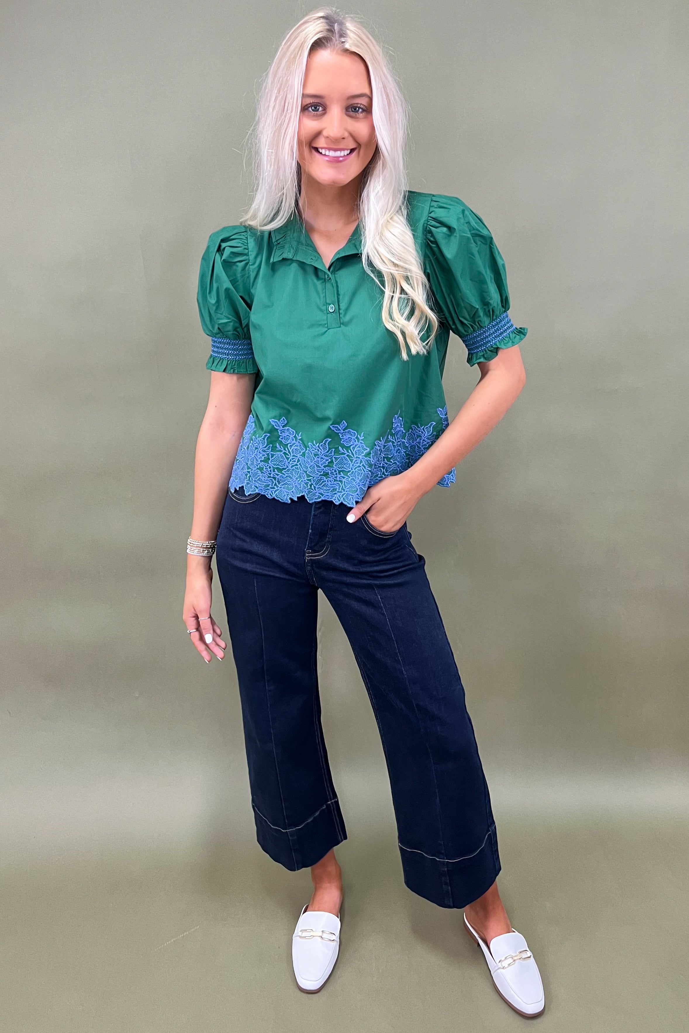 The Glowing Florals Embroidered Top is truly one of those rare finds that blends style, comfort, and standout details into one swoon-worthy piece. You’ll find yourself reaching for it again and again because it makes you feel as radiant as it looks. 💚✨