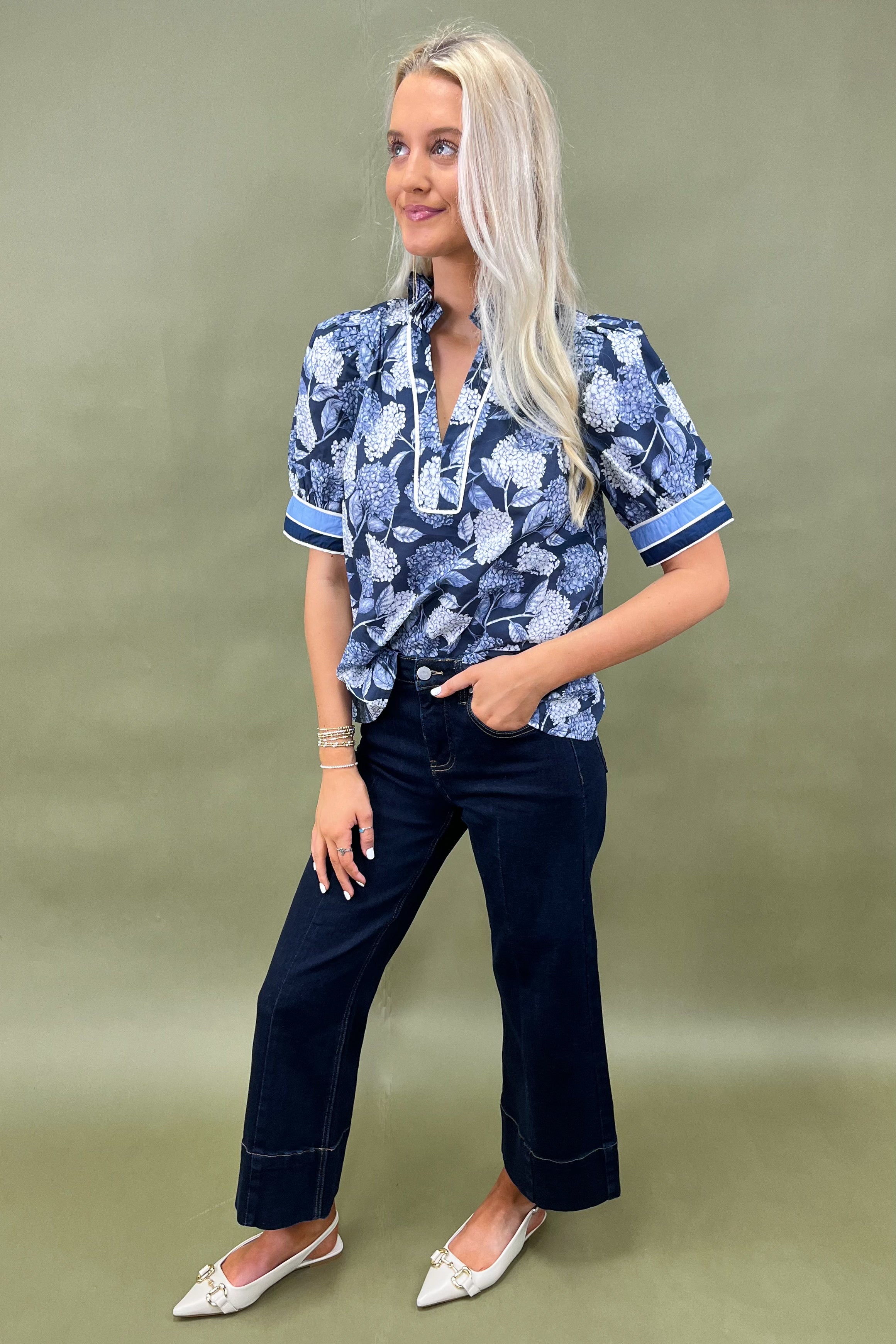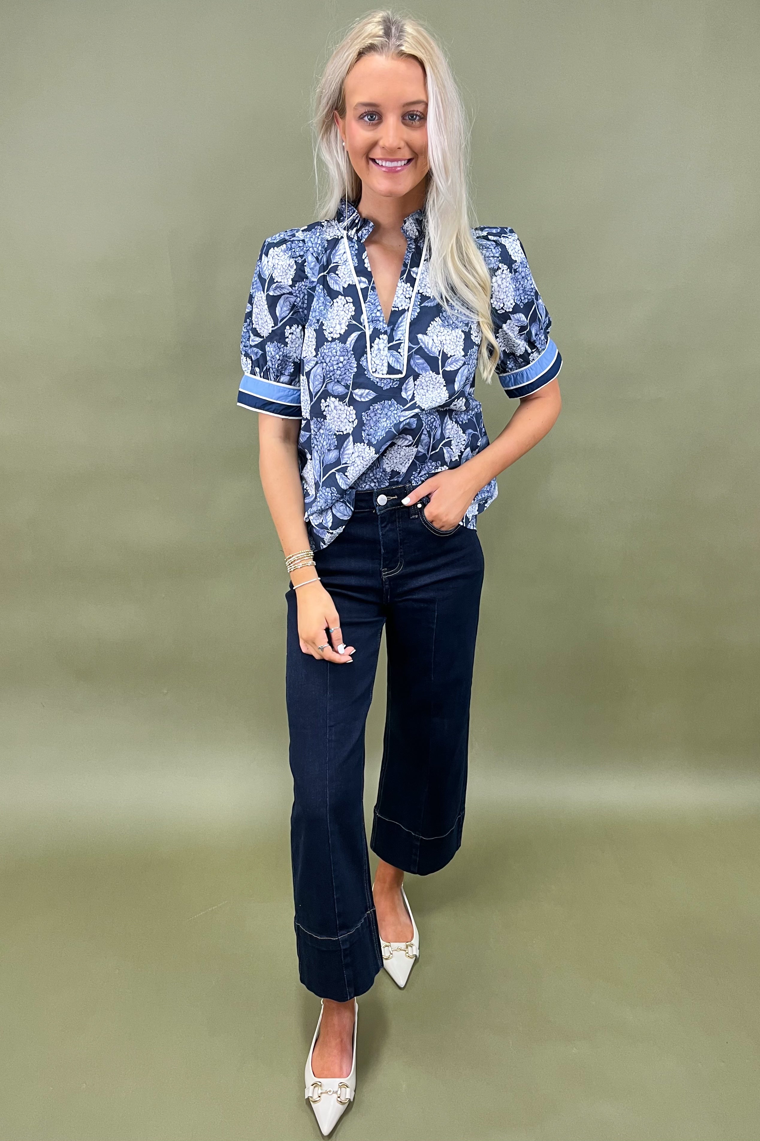 Meet your new wardrobe crush: the Hydrangea Haven Floral Top. She’s bold, beautiful, and brimming with personality—basically the perfect blend of statement and staple. With its stunning hydrangea-inspired print in crisp navy and soft ivory, this top feels like a fresh bouquet that never wilts. Whether you’re brunching with friends, taking on a busy workday, or sneaking away for a weekend adventure, this top will carry you through in style.