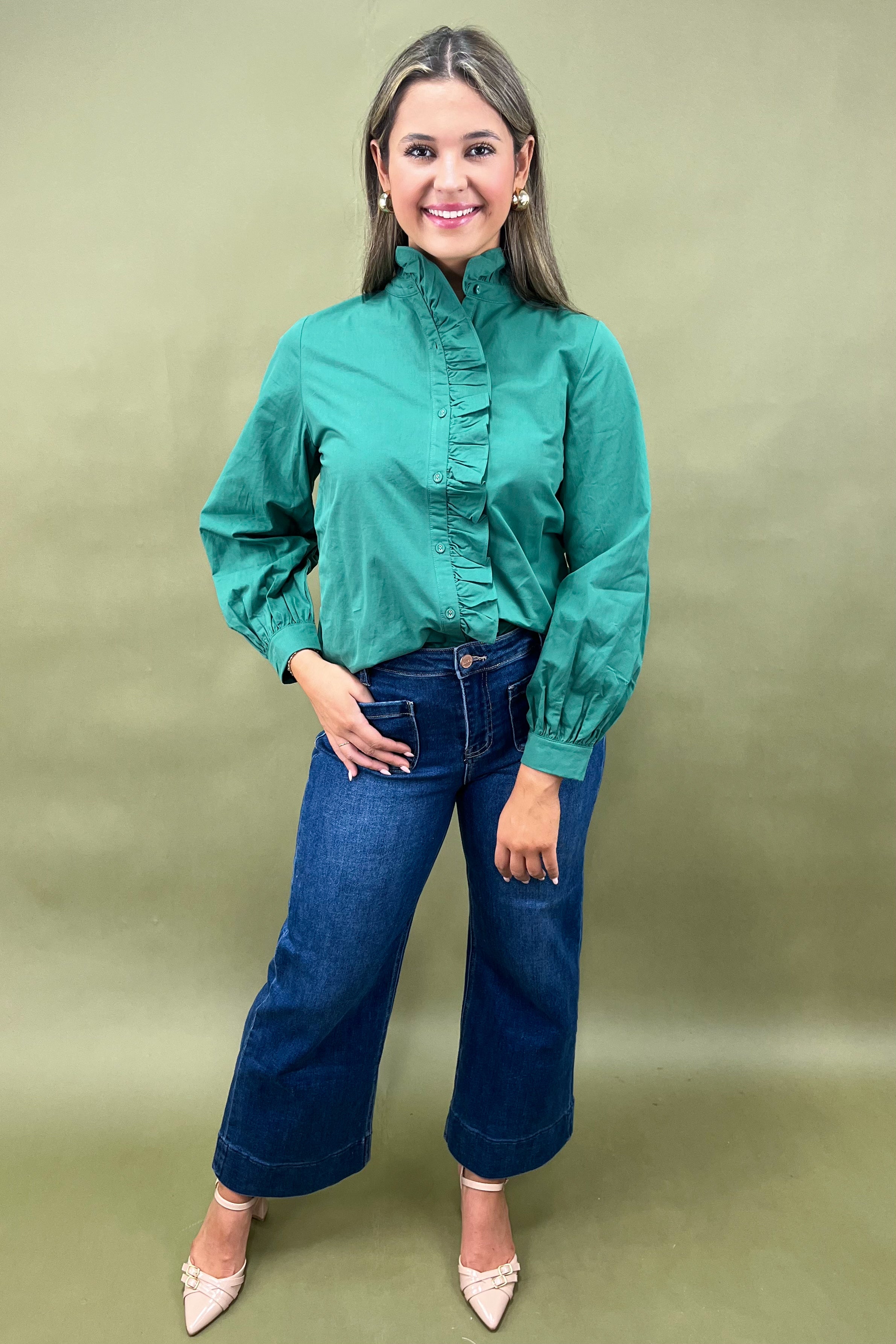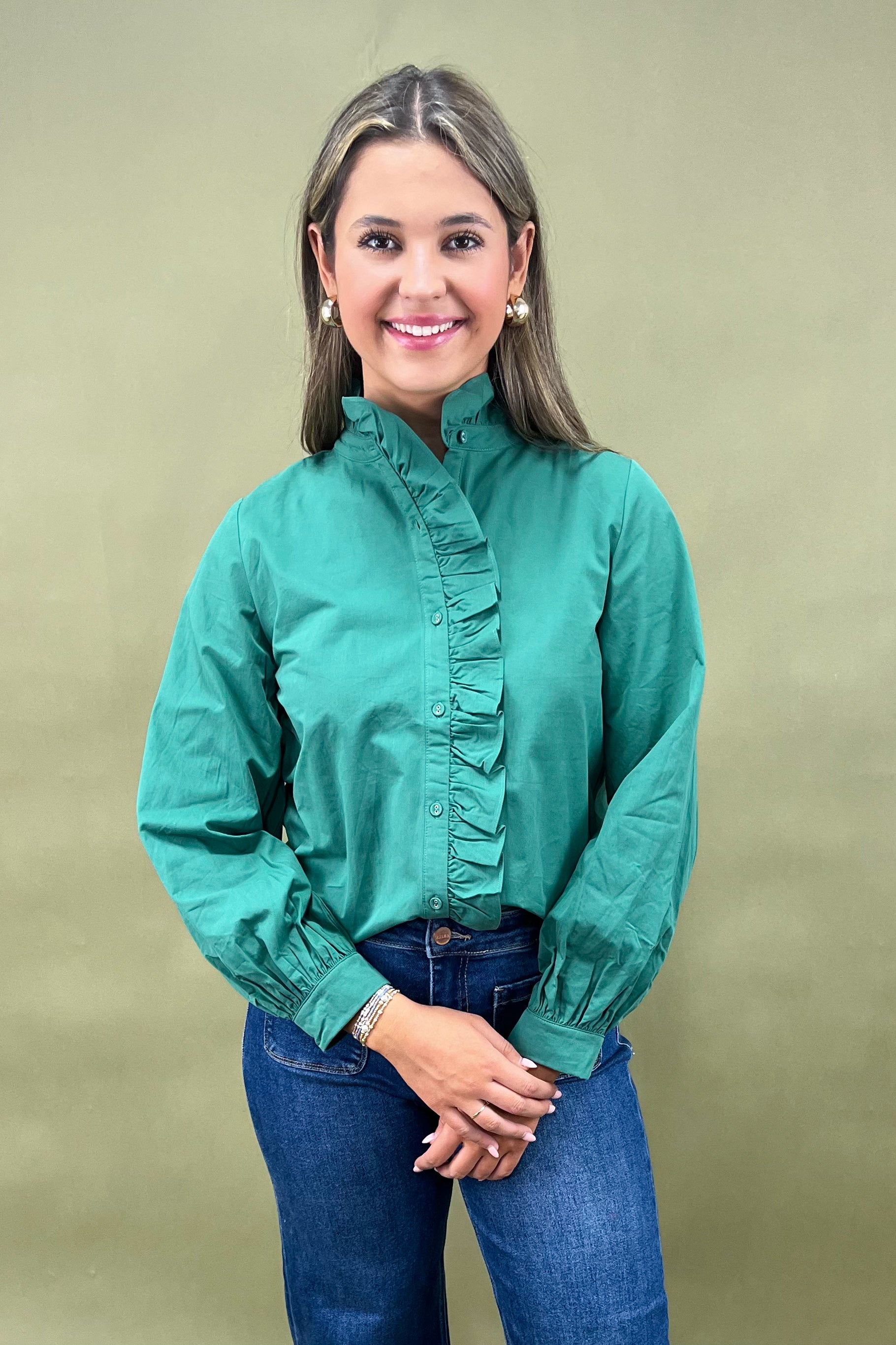 This top is for the girl who loves to stand out without trying too hard, who knows the power of a good ruffle, and who’s not afraid of a little color in her wardrobe. Wear it to the office, date night, weekend markets, or brunch with the girls—you’ll find yourself reaching for it again and again. 💚
