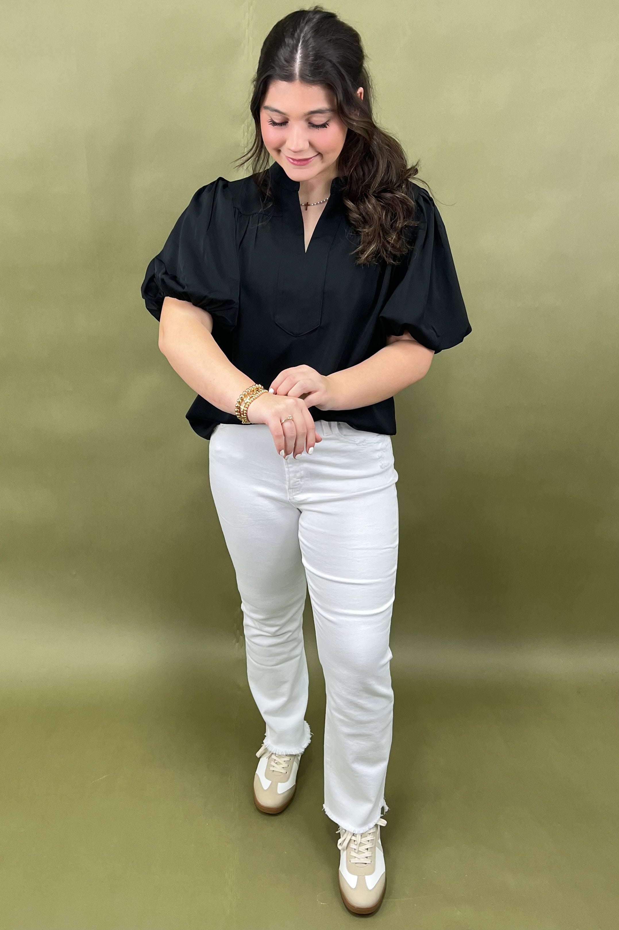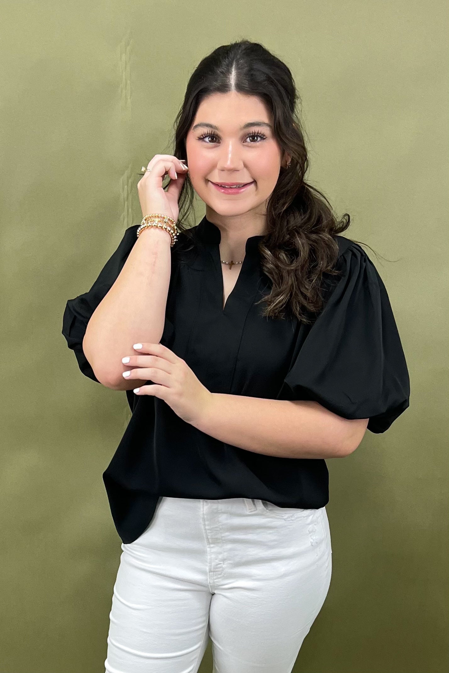Every wardrobe deserves a timeless black top—the one you reach for on days when you want to look polished without even trying. The Starlit Charm Top is exactly that—effortless elegance with just the right touch of charm. From the soft, flowy fabric to the puffed sleeves with gathered details, this top will quickly become your secret weapon for everything from workdays to dinner dates.