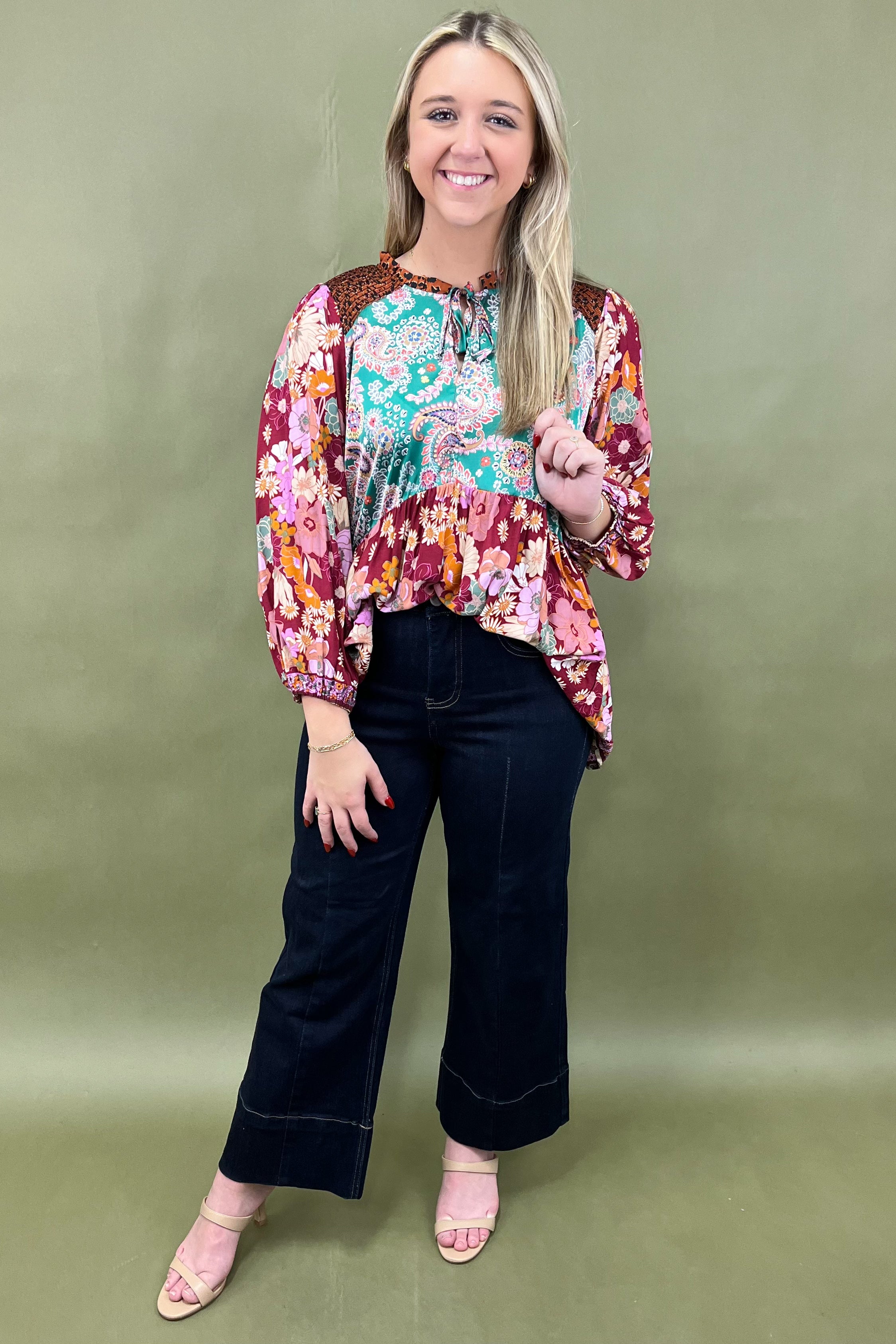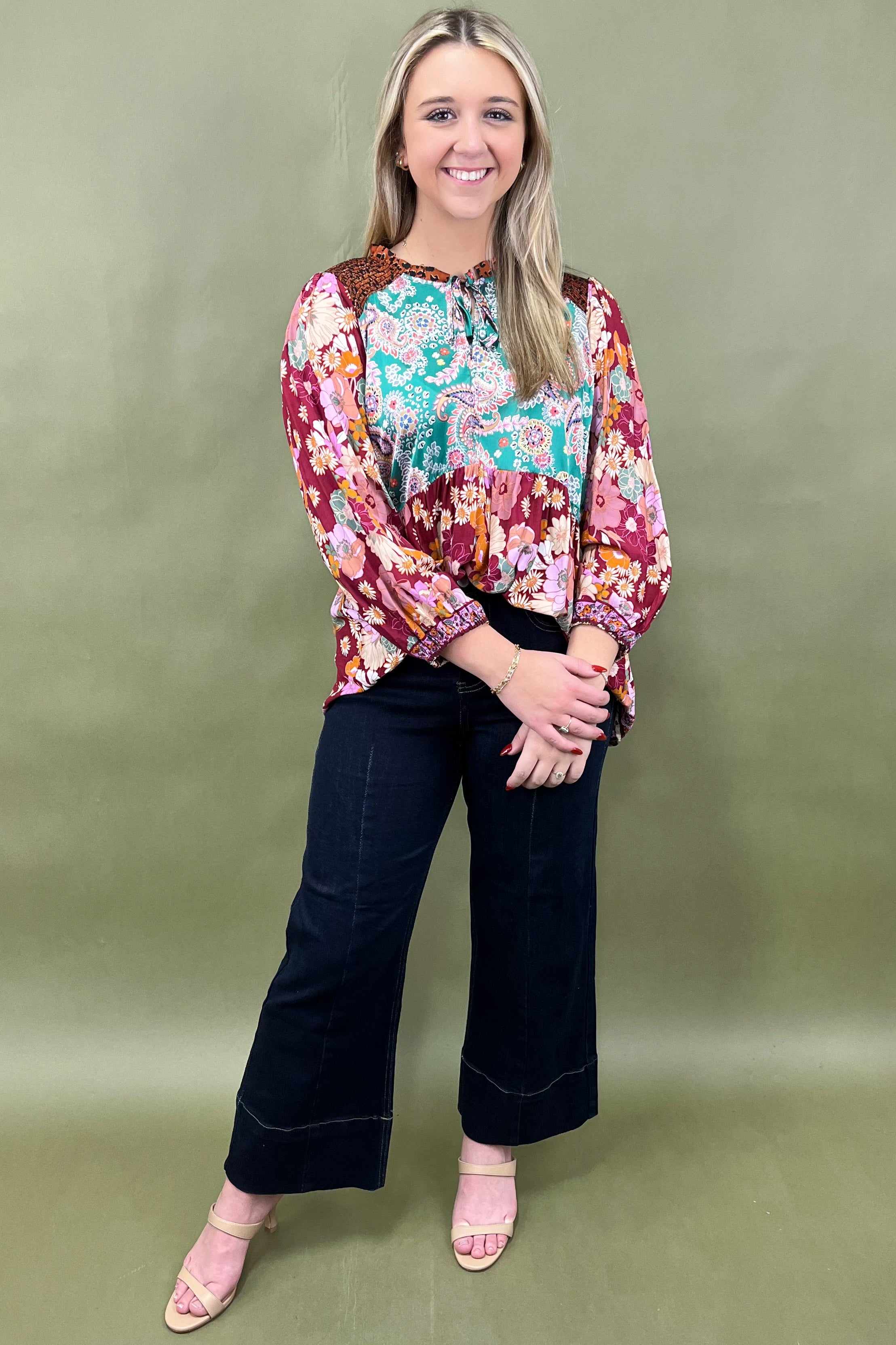 Meet the Chic Charm Top—the ultimate boho-luxe piece that blends vibrant prints with playful elegance. From its patchwork of paisleys and florals to the smocked neckline and flowy silhouette, this top was made for standing out in style. 🌼💃 It’s breezy, bold, and brimming with personality—just like you.