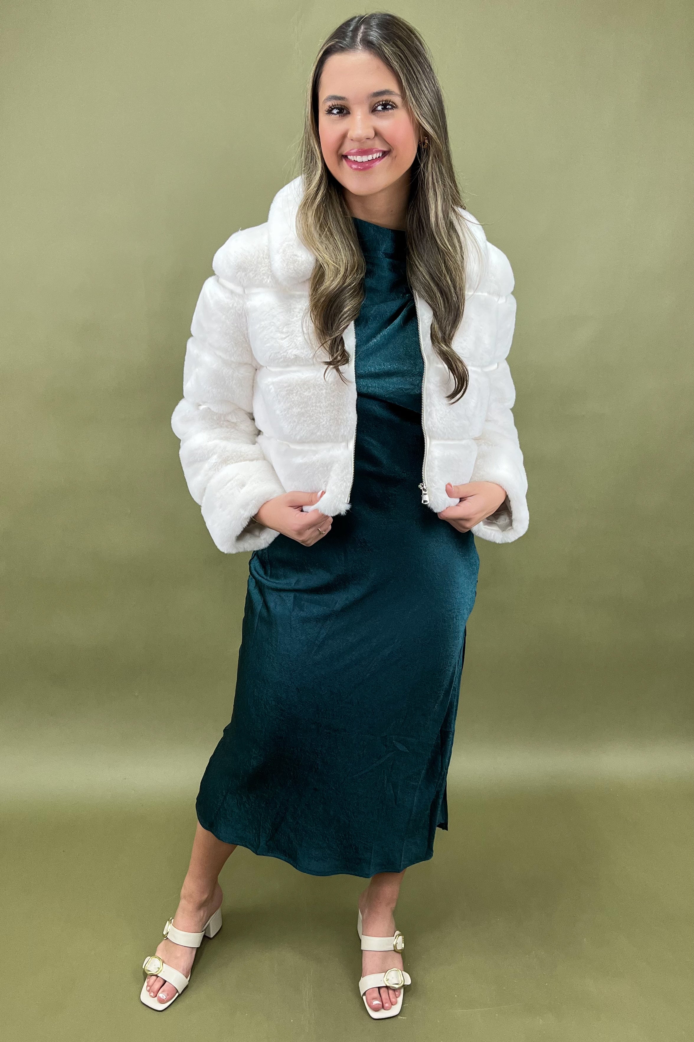 Evening Glam → throw over a satin dress with heels for a winter date night 💃✨