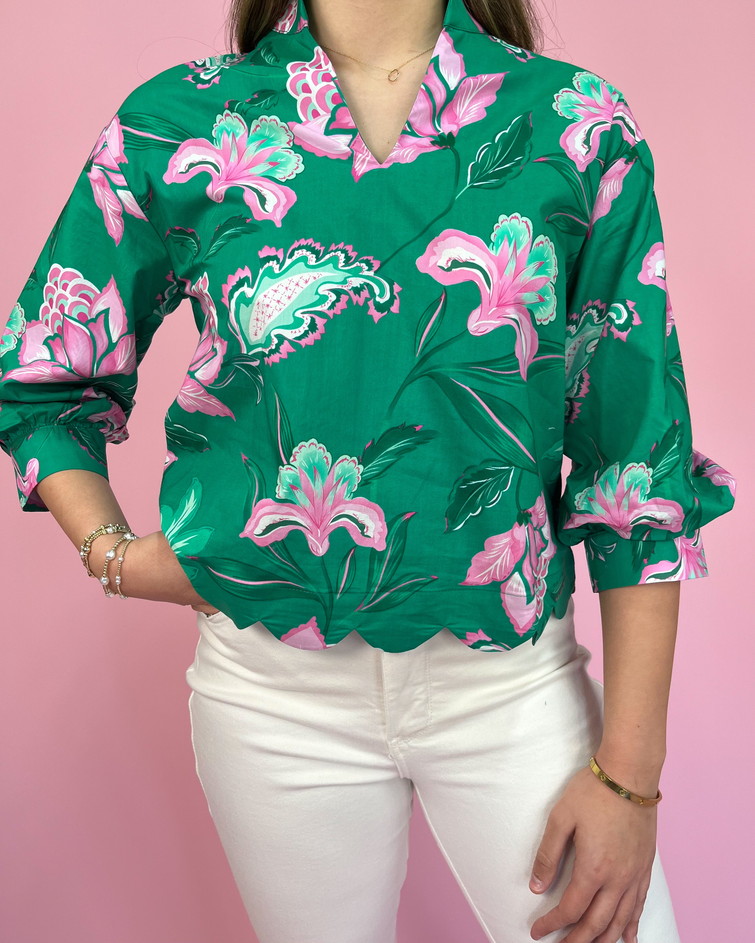 Style: Floral Scalloped Hem Top