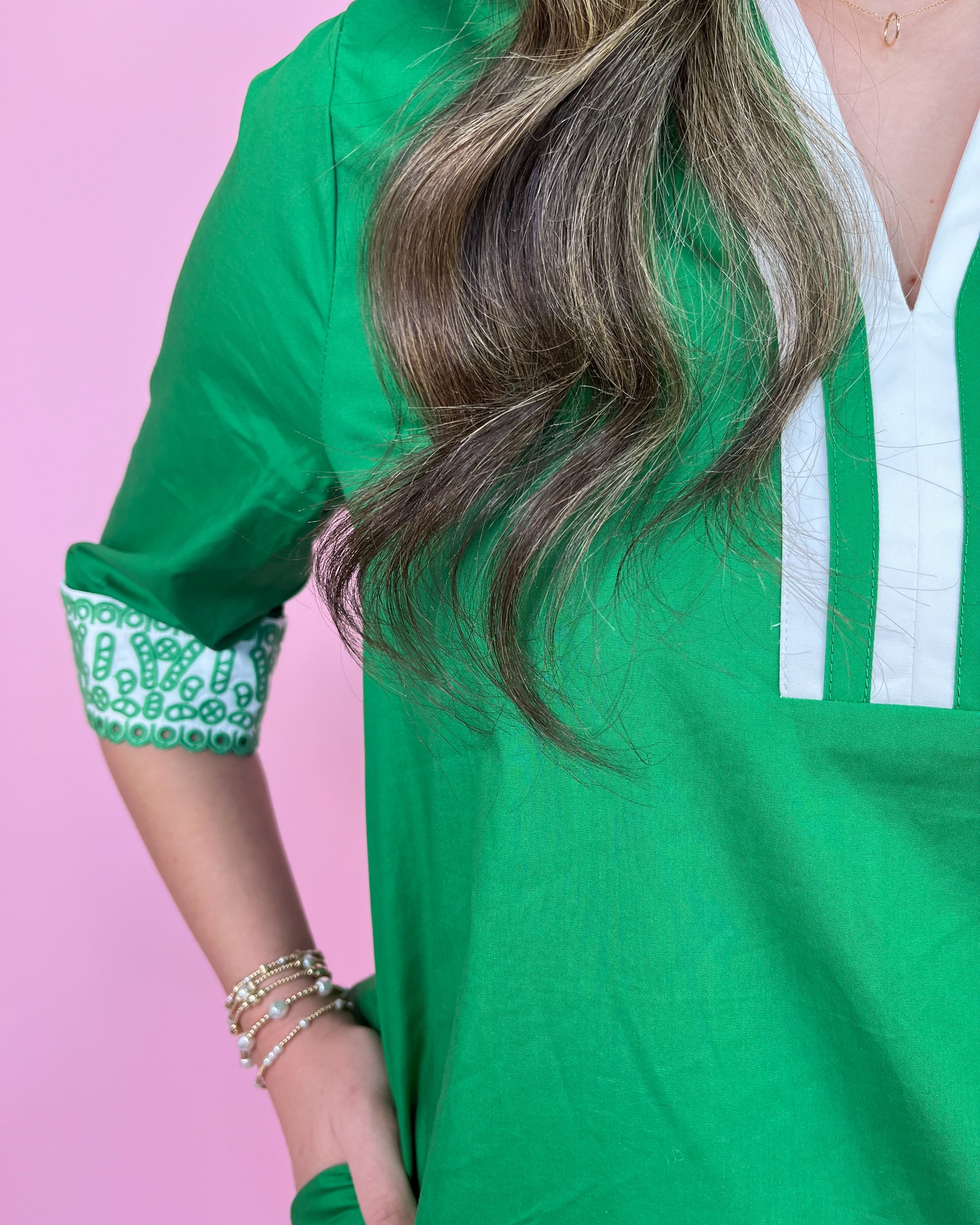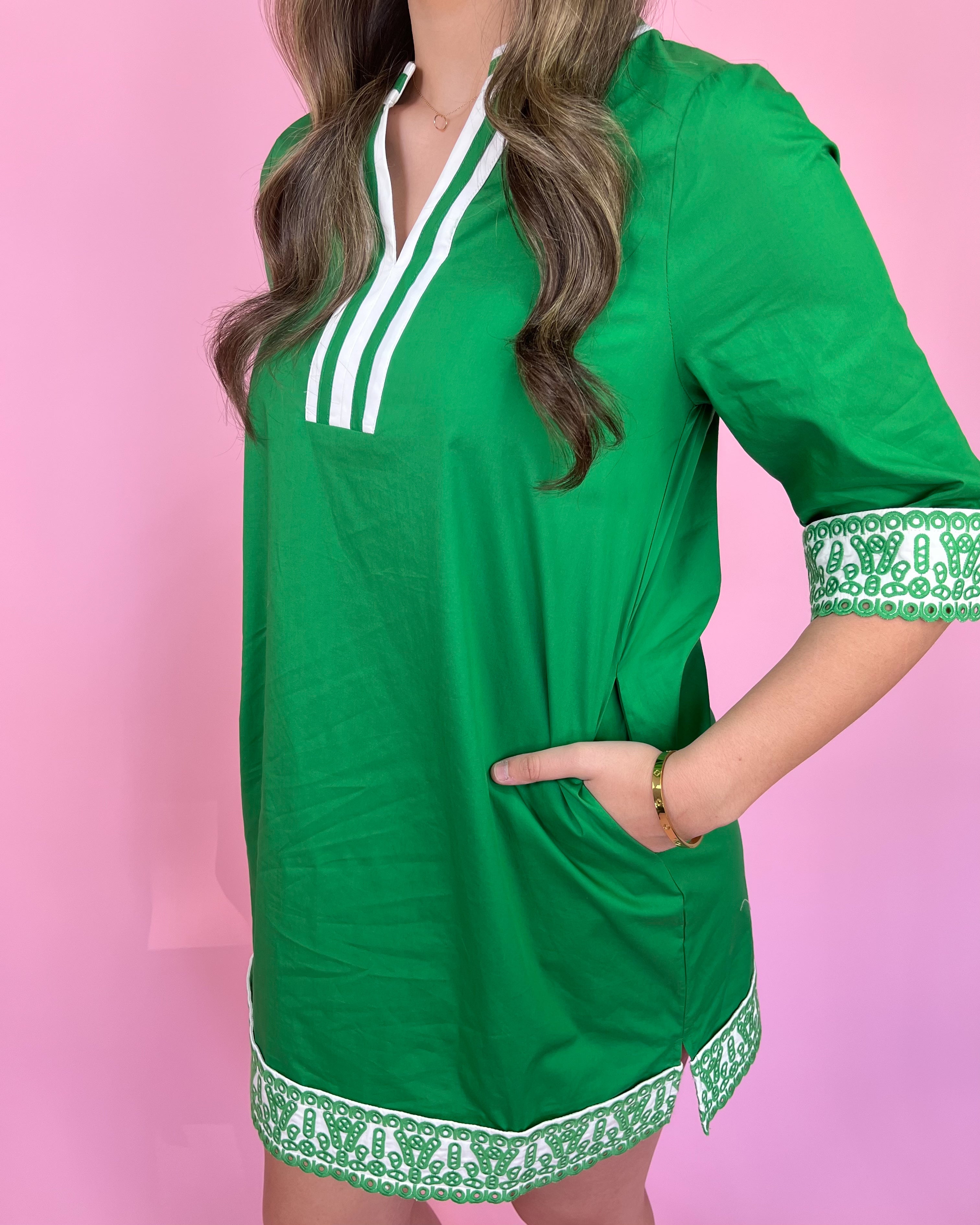 ✨💚 Meet the Shamrock Sweetie Embroidered Mini Dress — a cheerful burst of green that brings effortless charm to your spring lineup. With its vibrant kelly green hue and crisp white embroidered trim, this dress radiates timeless resort vibes with a fun, flirty twist.