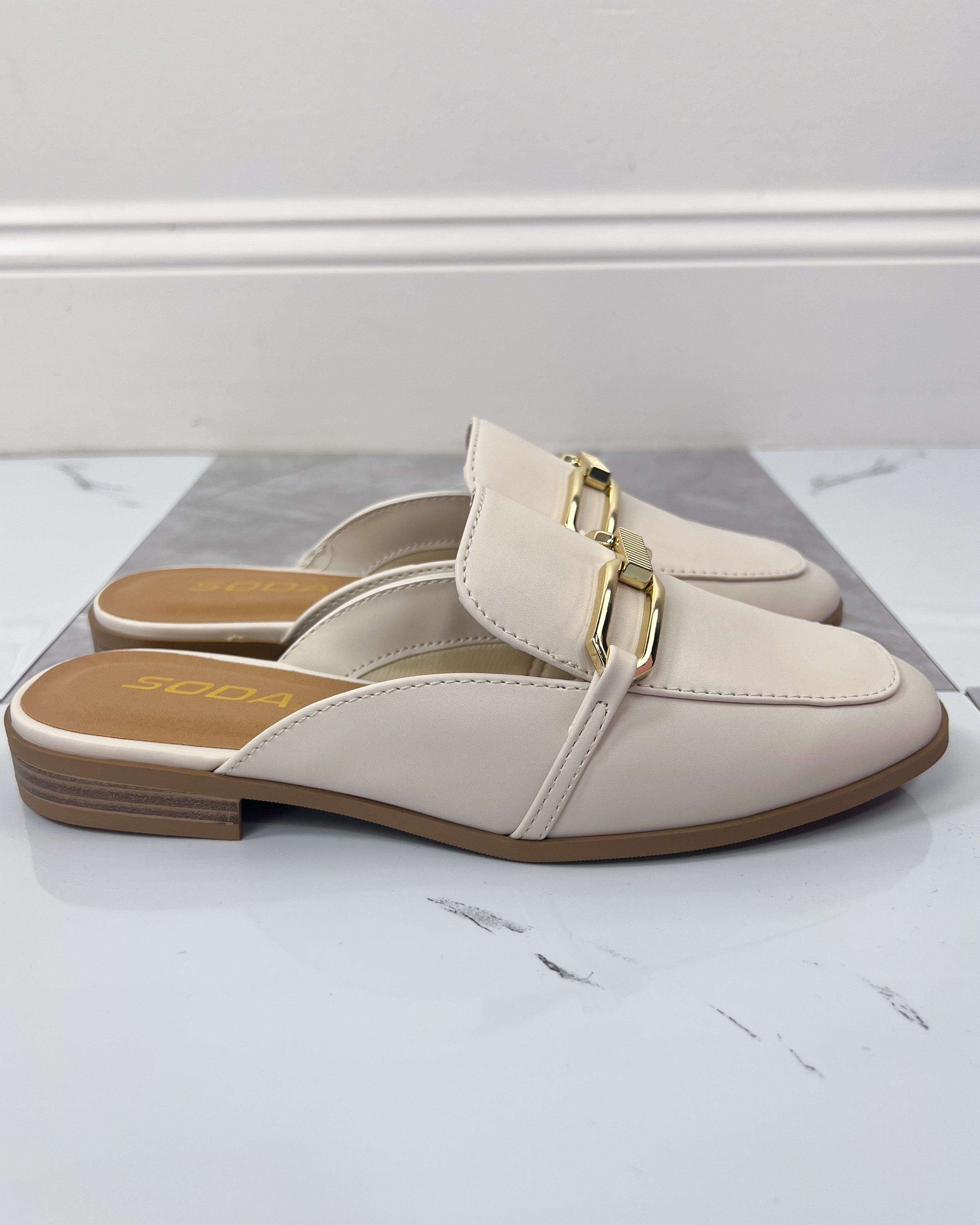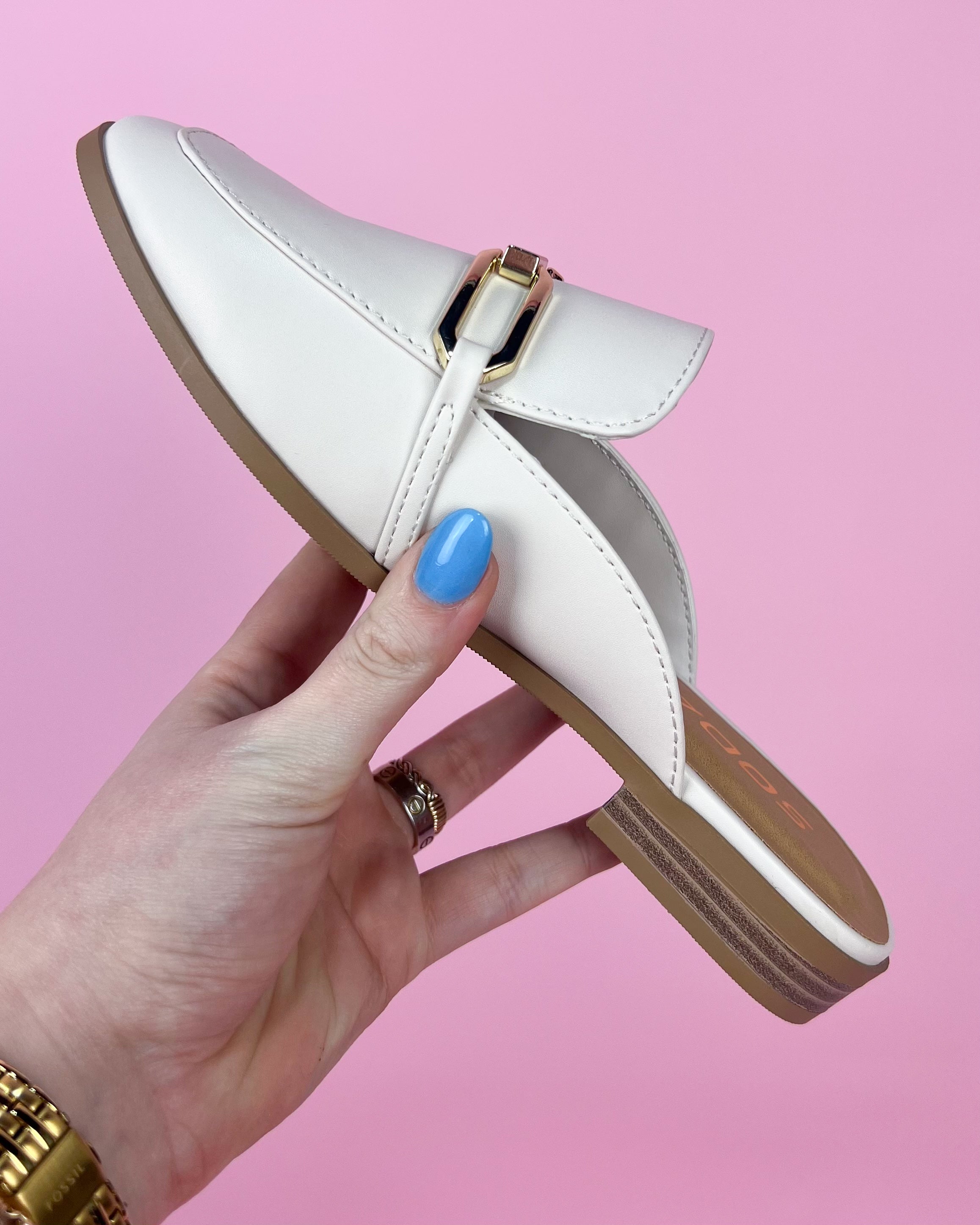 If you love pieces that instantly make you look polished with zero effort, Giselle is calling your name. This chic ivory mule is the definition of boutique sophistication — sleek, timeless, and finished with a bold gold hardware accent that gives just the right amount of glam. Slip them on and suddenly your everyday jeans feel elevated, your work outfit feels sharper, and your weekend look feels intentionally styled. Effortless elegance has never been so easy.