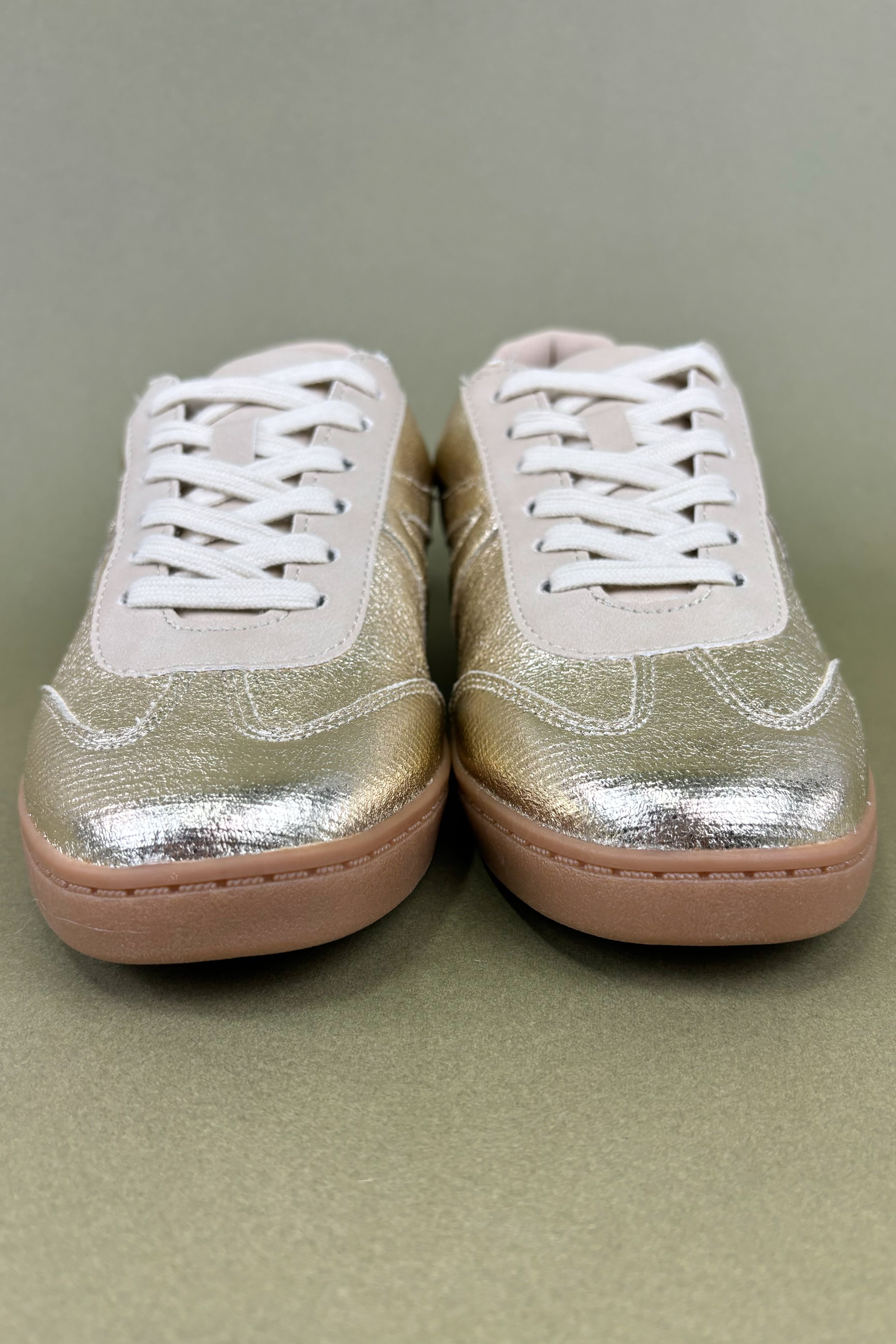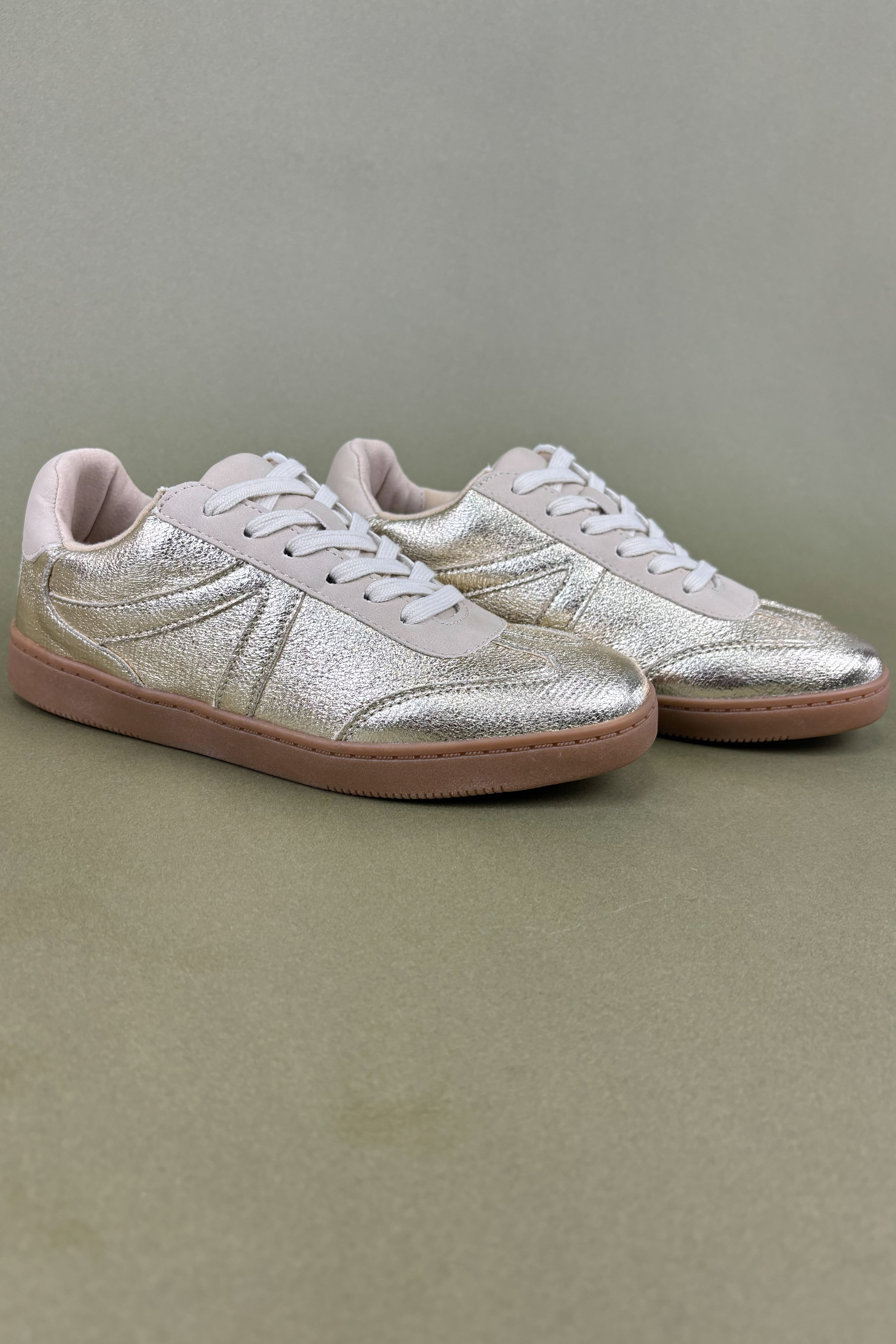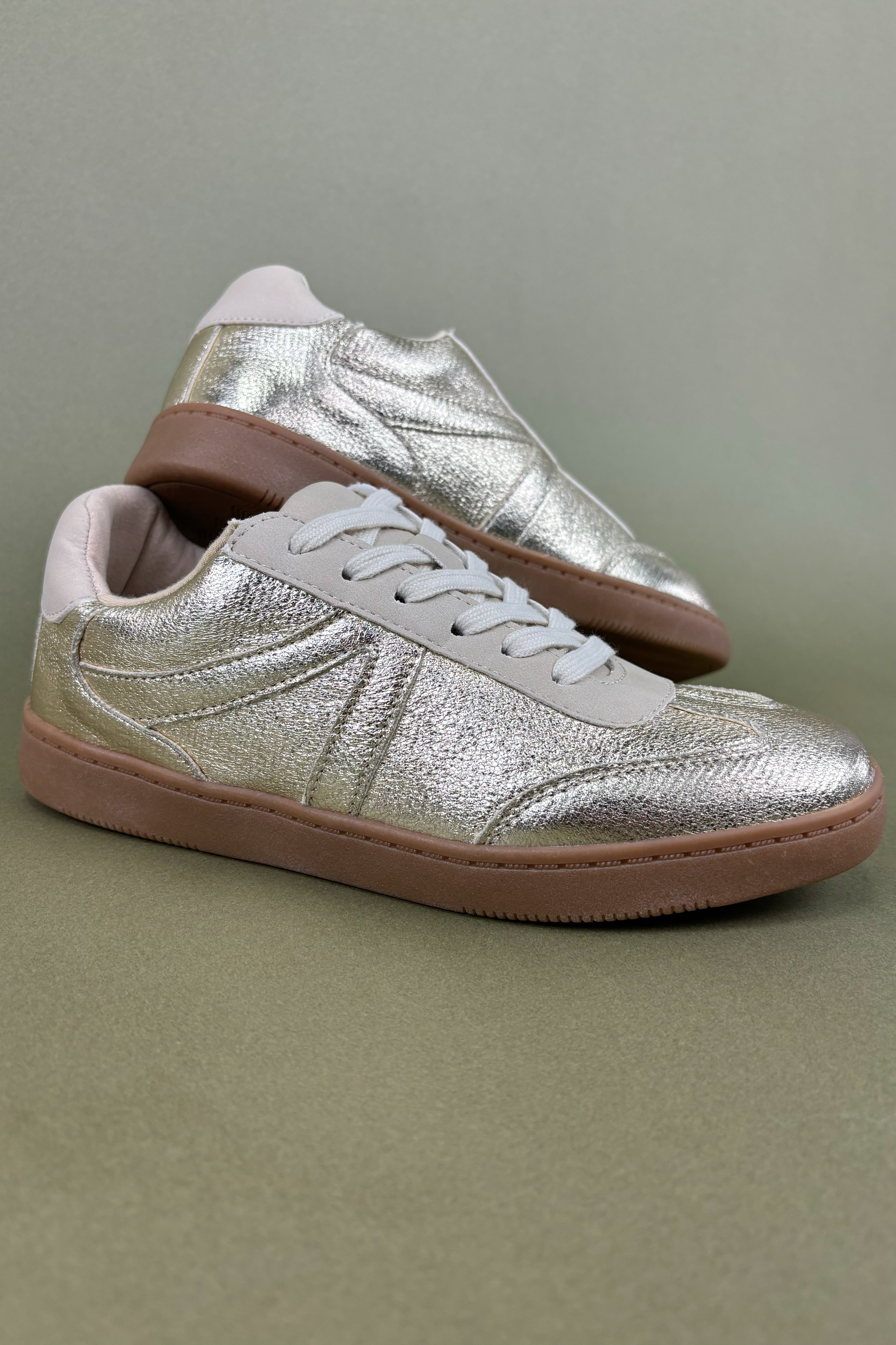 Add a little sparkle to your step with these sleek metallic sneakers. Featuring a modern silver shimmer, soft neutral panels, and a classic gum sole, these kicks bring the perfect mix of casual cool and standout style. They’re easy to slip into for everyday wear, yet bold enough to make even the simplest outfit shine.
