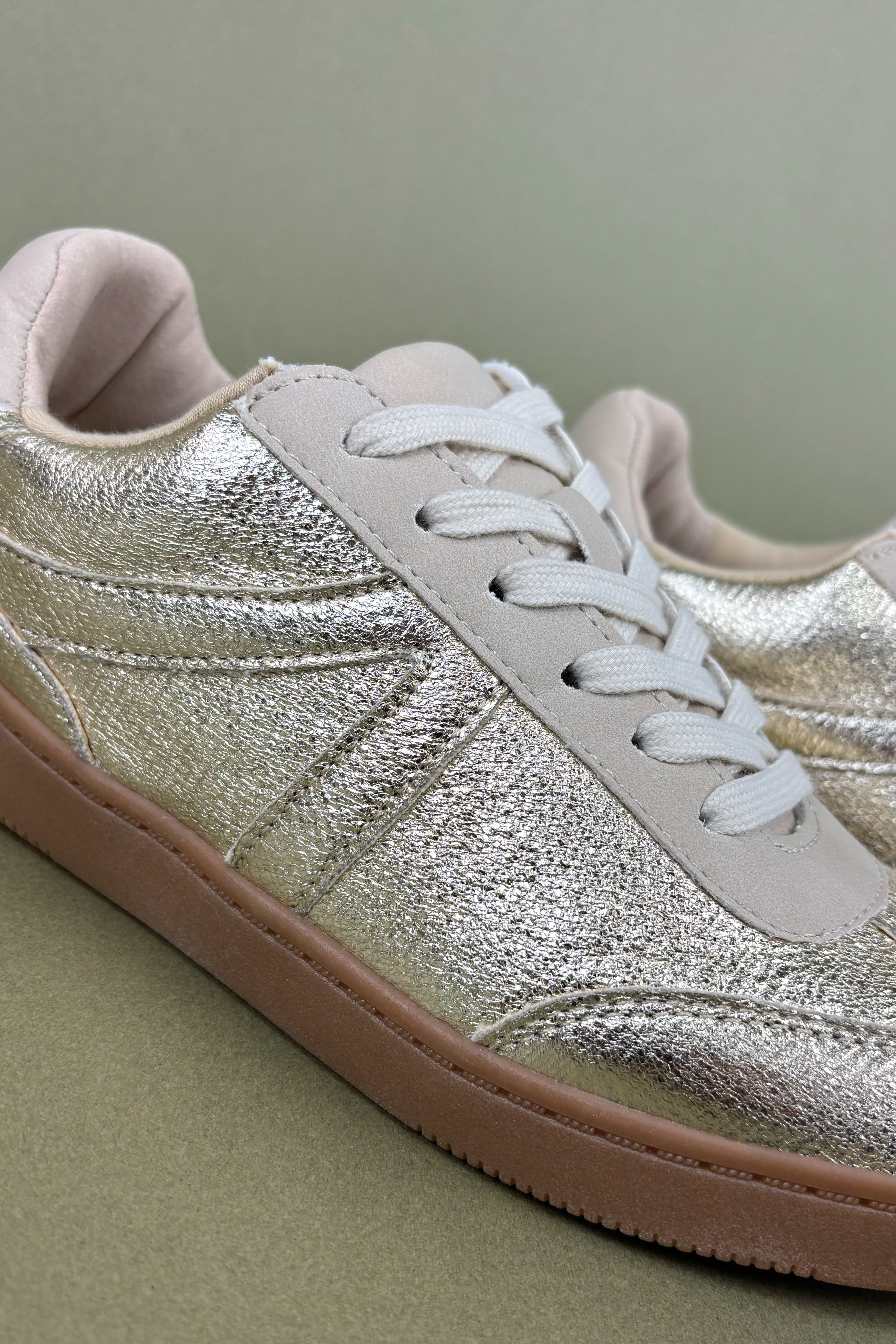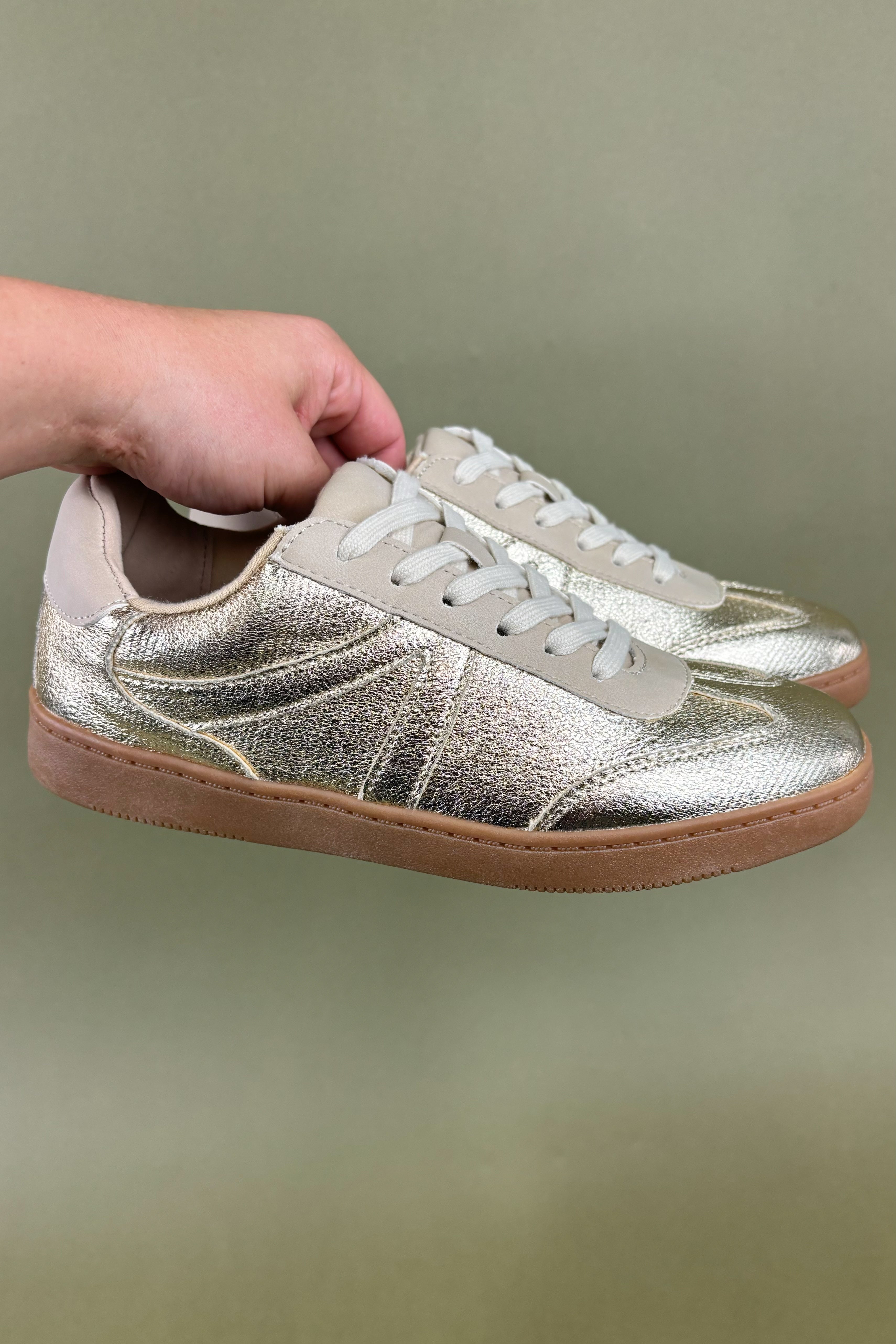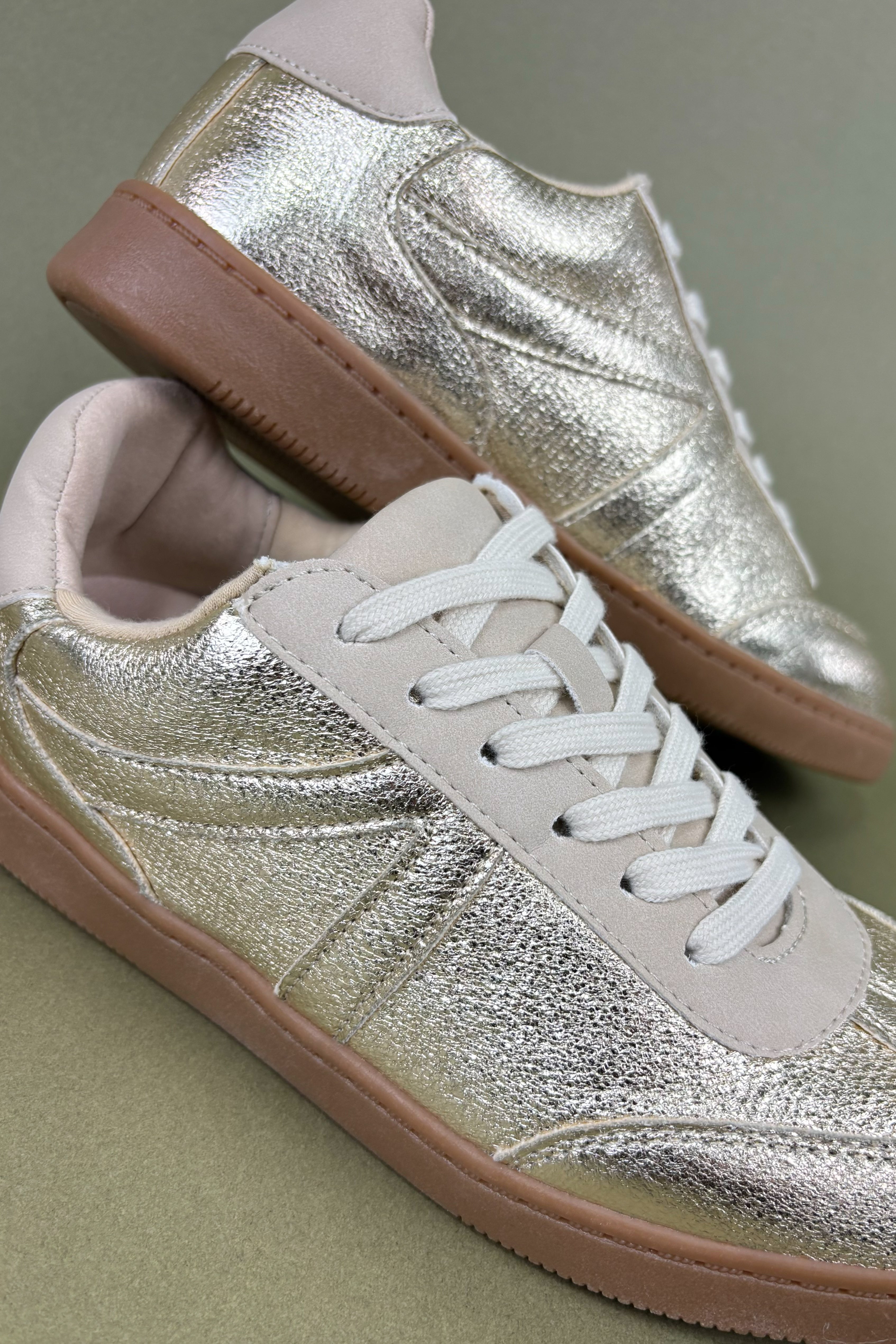 Add a little sparkle to your step with these sleek metallic sneakers. Featuring a modern silver shimmer, soft neutral panels, and a classic gum sole, these kicks bring the perfect mix of casual cool and standout style. They’re easy to slip into for everyday wear, yet bold enough to make even the simplest outfit shine.