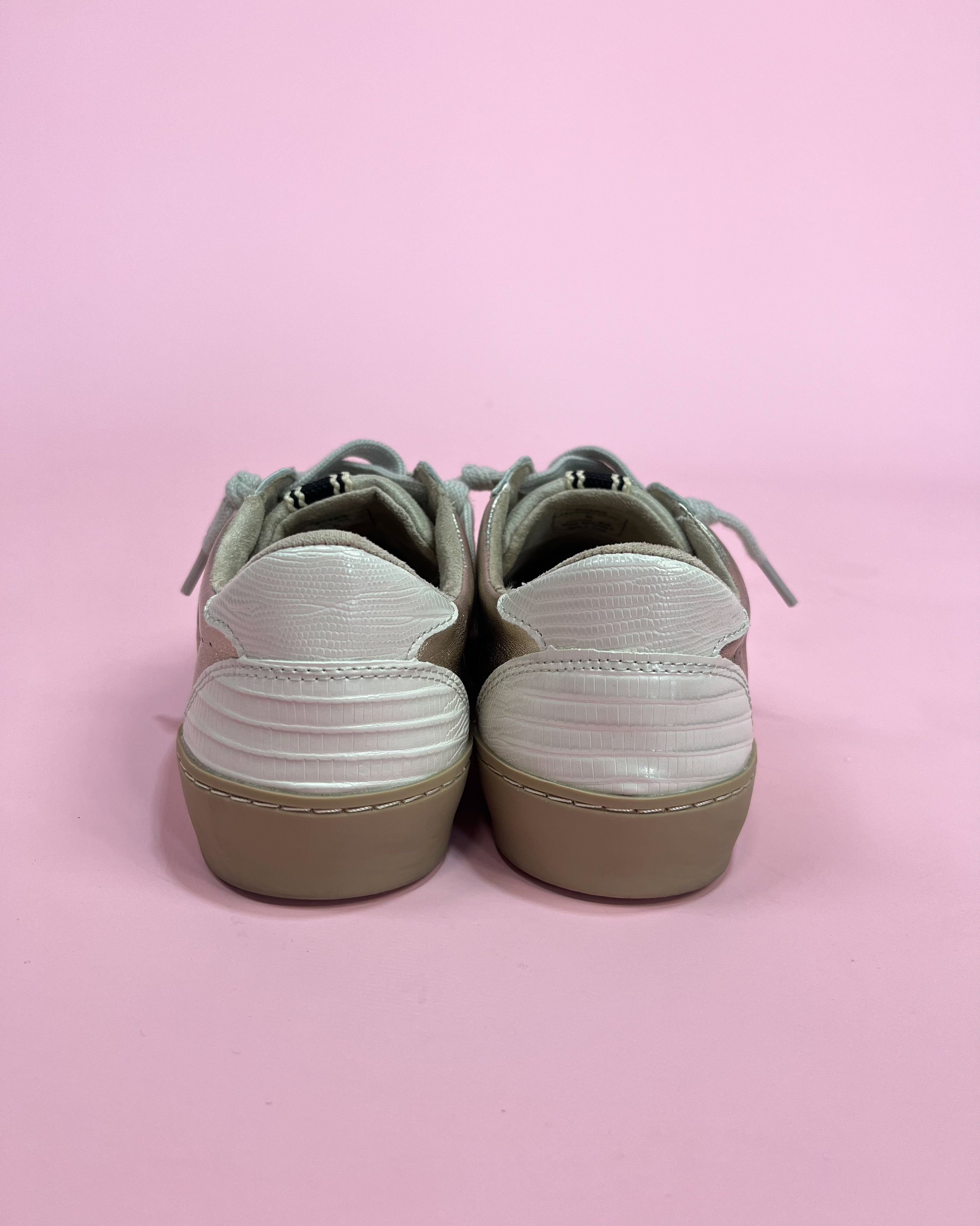 The mix of soft neutrals and subtle metallic detail makes it feel modern, fresh, and so wearable. 💛 Rebecca is made for pairing with denim, dresses, athleisure, and everything in between — the kind of sneaker you’ll grab on repeat for errands, travel days, and everyday chic looks.Details We’re Loving 💕