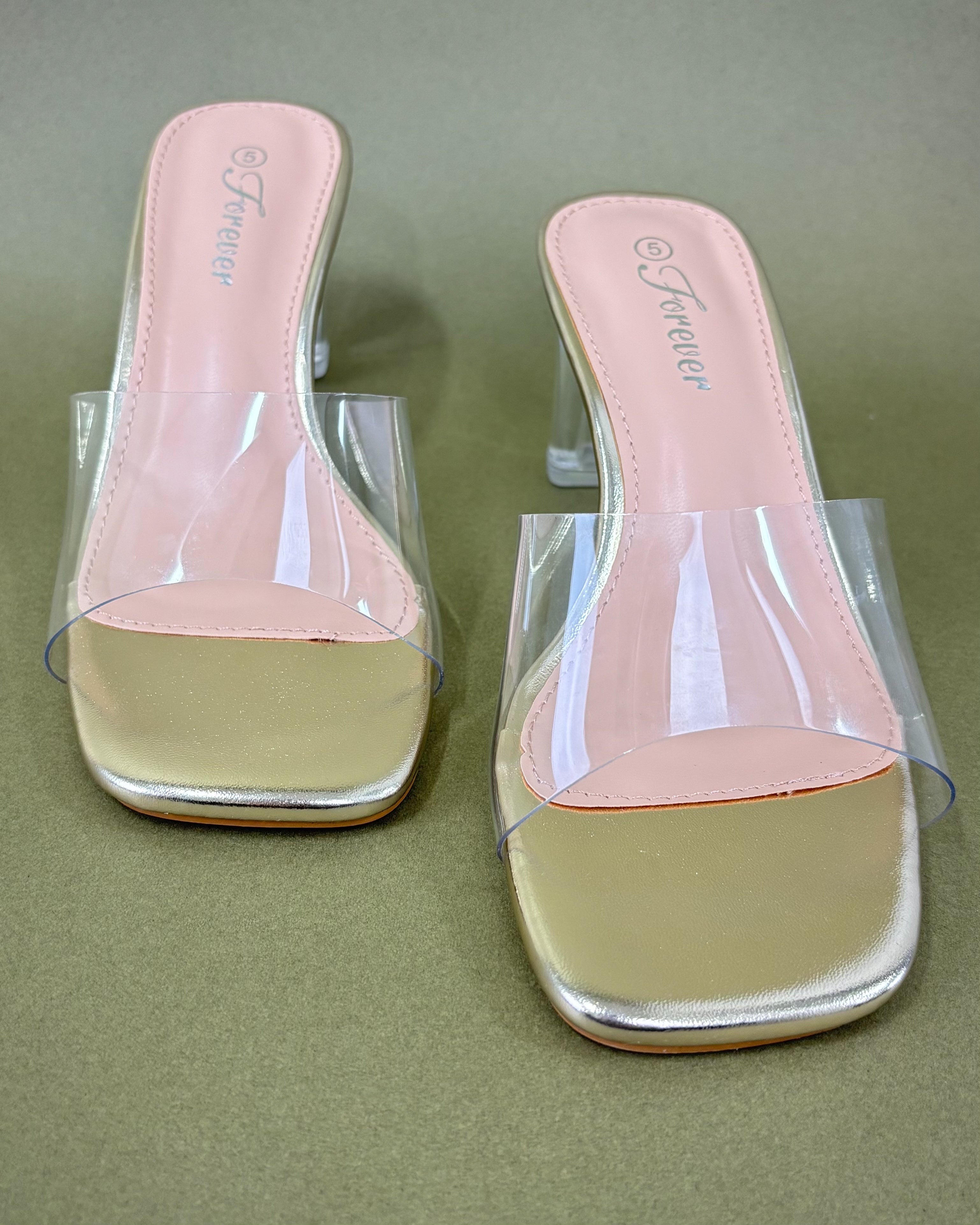 Meet your new glam essential â The Sammy Clear Heel! Chic, modern, and effortlessly elevated, this clear mule heel adds instant sophistication to any outfit âš. With its transparent strap and crystal-clear block heel, Sammy gives that sleek âbarely thereâ look while still offering stability and comfort. The soft blush footbed and metallic gold detail make her the perfect blend of feminine + trendy. Whether youâre dressing up for a special event or adding sparkle to your everyday style, Sammy is the heel youâll reach for again and again đ.