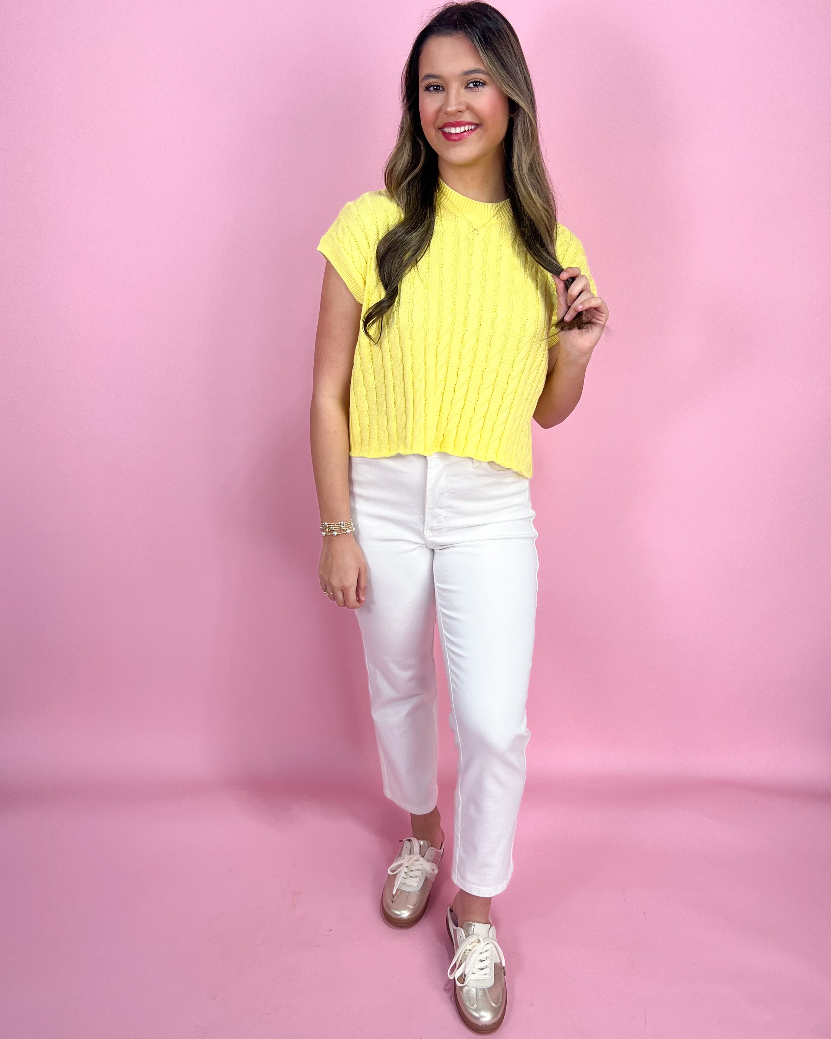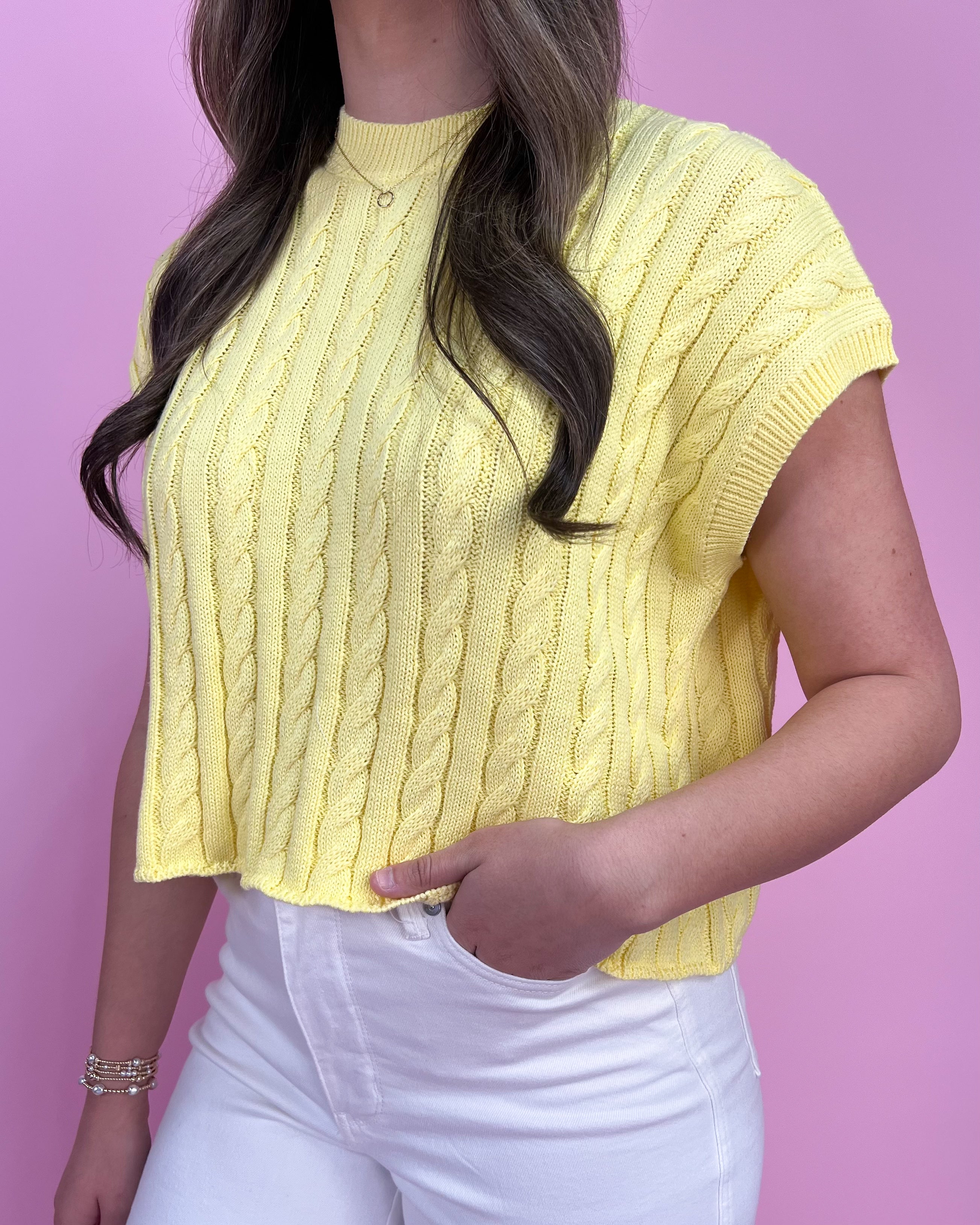 The cable knit texture makes it feel elevated and cozy, while the cropped length keeps it modern + flattering. Throw it on with high-rise denim, a denim skirt, or even layered over a dress for the cutest spring-to-summer styling moment ✨